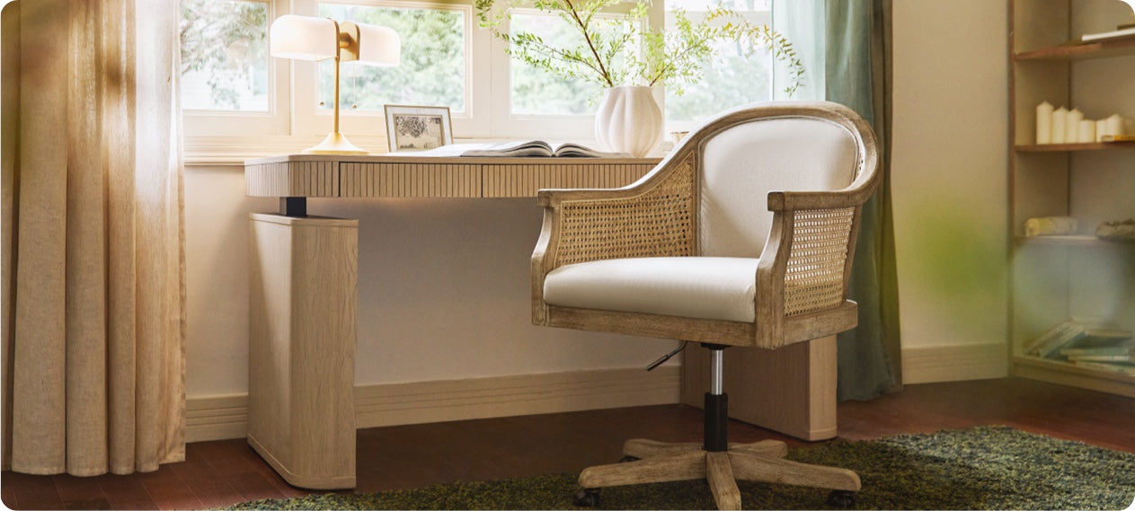 The Julia Farmhouse Electric Height-adjustable Desk and the Baggio Electric Height-adjustable Desk offer support in their own ways, blending function and form into the natural flow. One invites slow, gentle moments; the other encourages dynamic, focused energy. Together, they reflect a modern home where movement, comfort, and life coexist seamlessly.