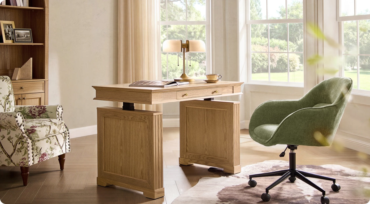 With smooth, quiet height adjustment, the Julia farmhouse adjustable standing desk adapts gently to these shifts. Sitting, standing, or lingering mid-transition, your body can follow its natural rhythm, easing tension and inviting comfort.