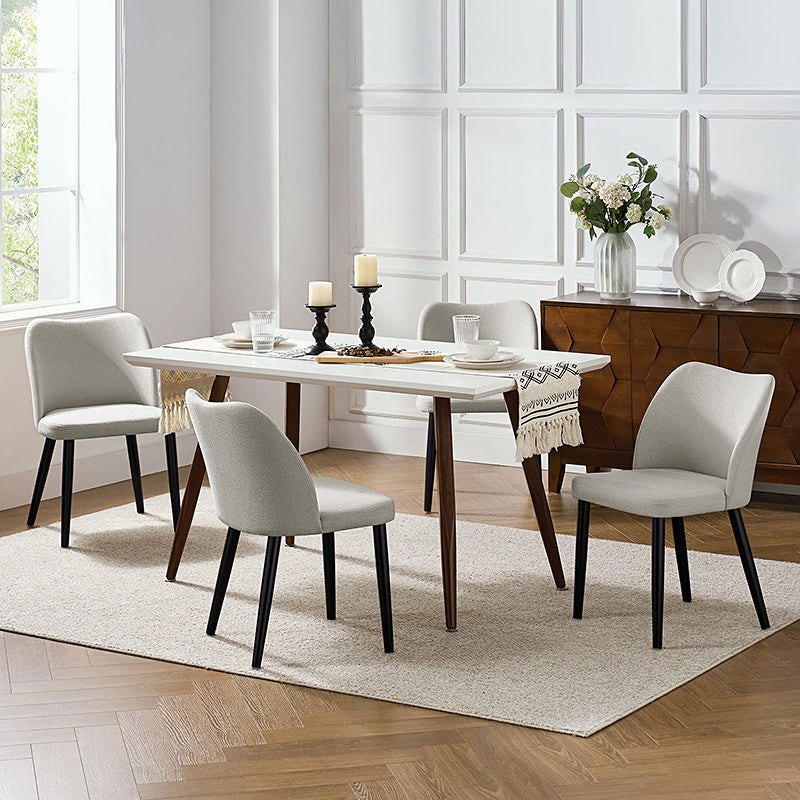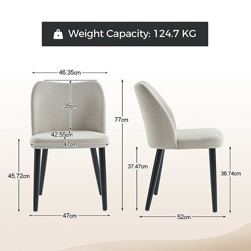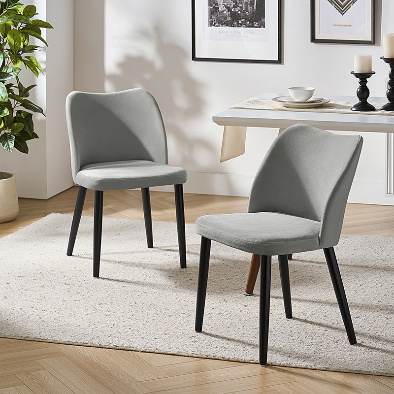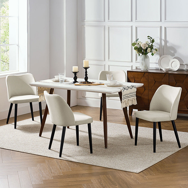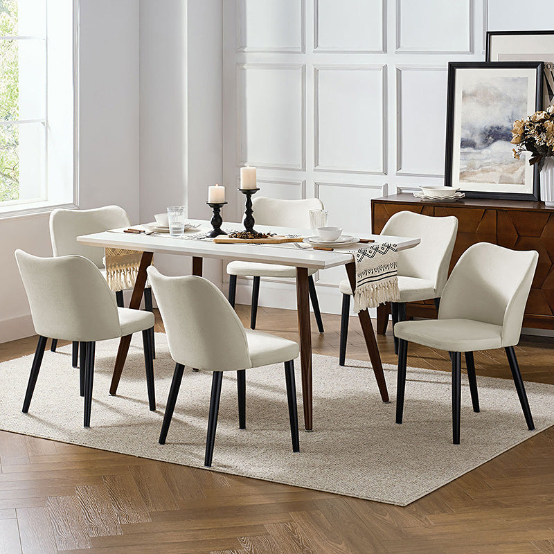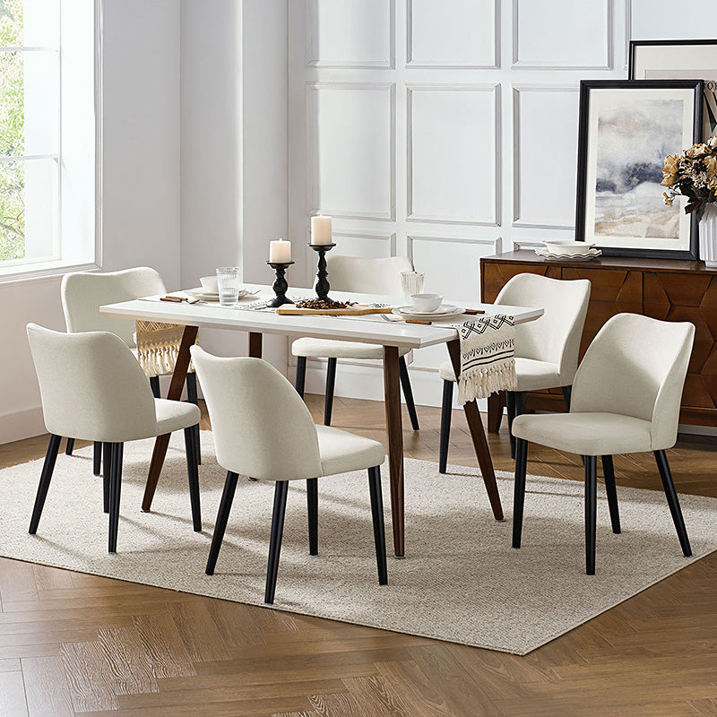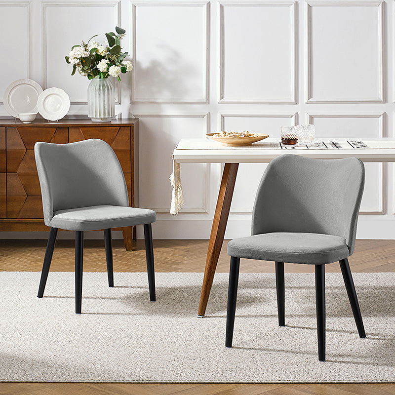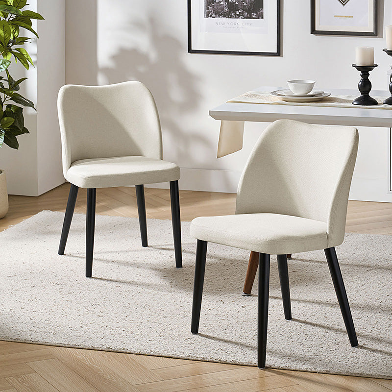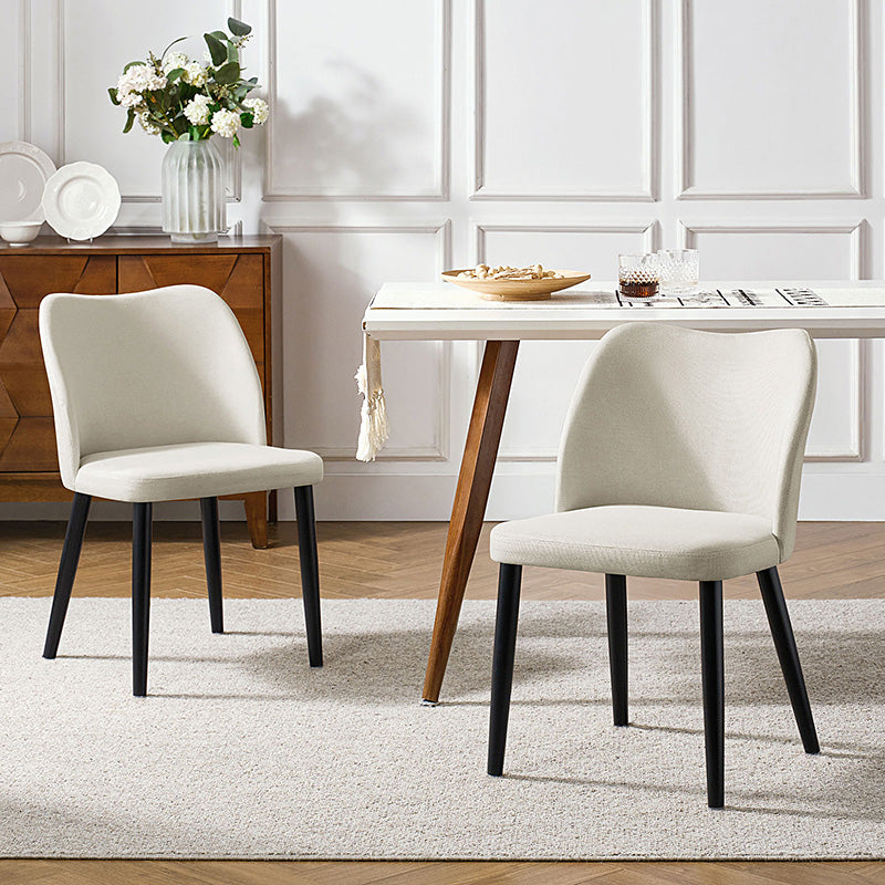 This dining chair embodies both style and comfort with the aesthetically pleasing ergonomic curved backrest, conforming perfectly to the contours of the human body for a comfortable seating experience. The high-density foam-filled seat cushion provides a soft and inviting feel for extended dining sessions. Crafted with solid wood tapered legs, the dining room chairs exude stability and durability, enhancing your dining space. These wood legs are coated with eco-friendly and odor-free paint, giving the chairs a fresh and natural look while prioritizing environmental sustainability. Assembly is a breeze, thanks to the innovative design that eliminates the need for screws. Simply screw the legs into place, and the chairs are ready for use.