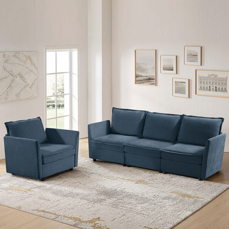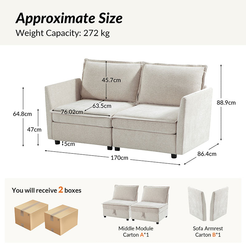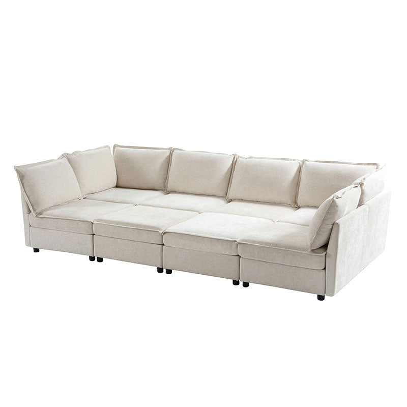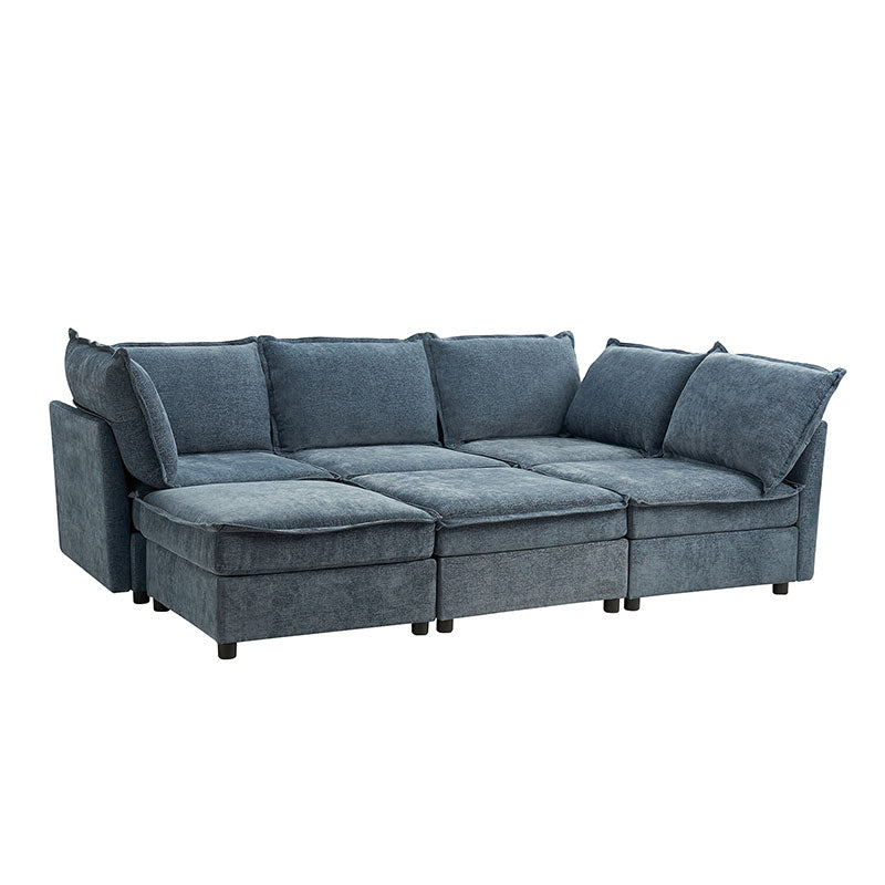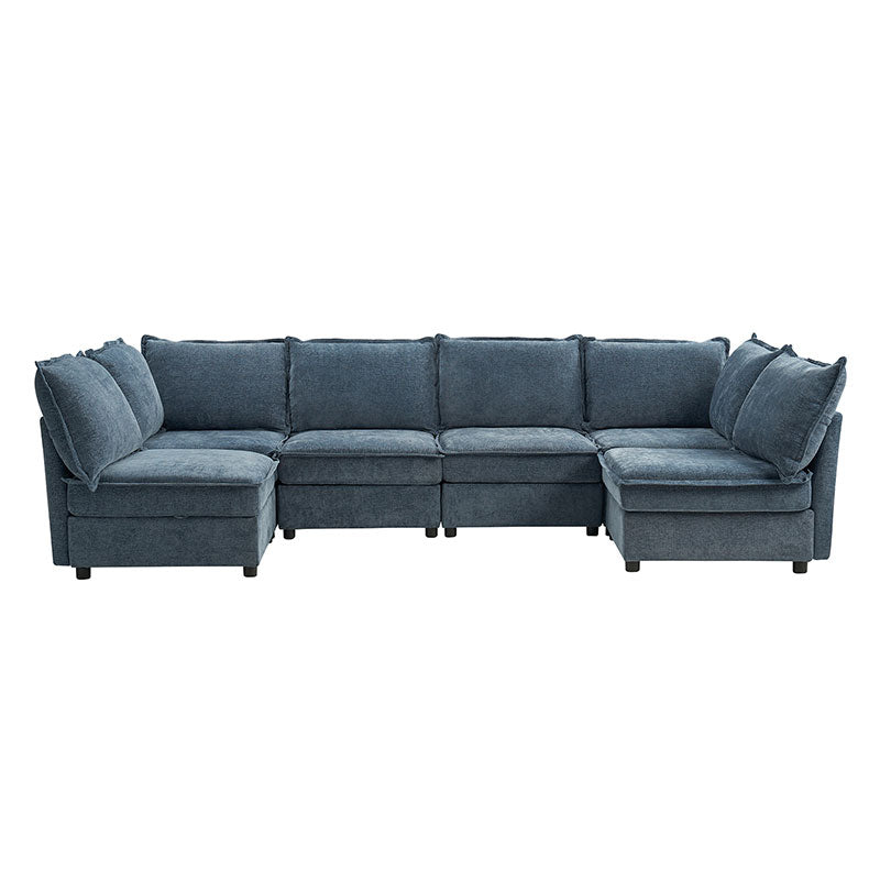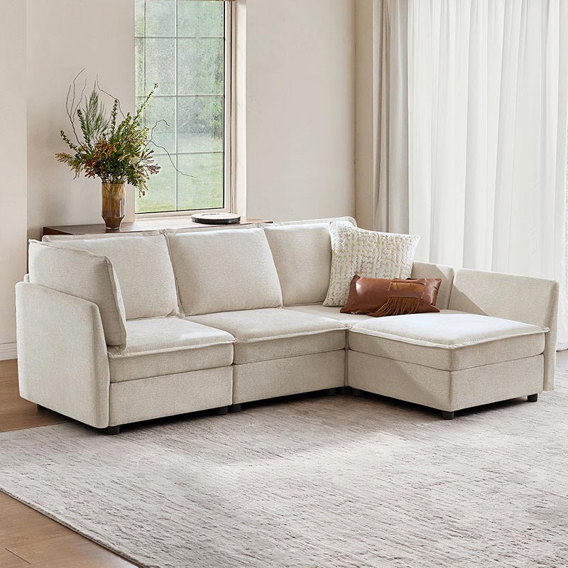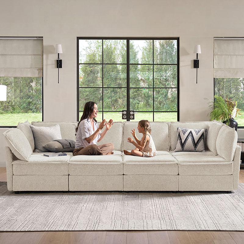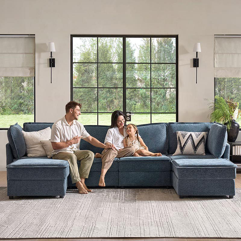 This modular sofa is designed for maximum comfort and versatility. Featuring 1.5x extra-wide seats, it caters specifically to larger individuals and expansive spaces. The soft cushions offer exceptional comfort. Hidden storage compartments under the seats help reduce clutter and provide easy access to everyday items. Its modular design allows you to rearrange the sections to create different living room layouts. Assembly is hassle-free with no tools required, and the oversized sectional sofa's segmented packaging ensures easy transportation. Additionally, the fabric covers are removable, maintaining a fresh and clean look.