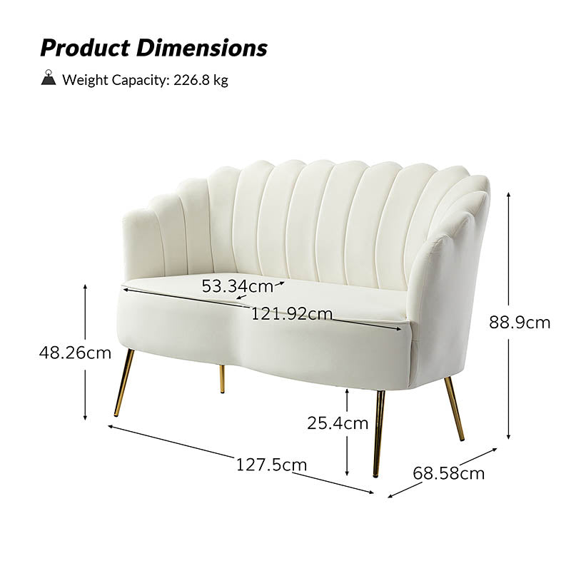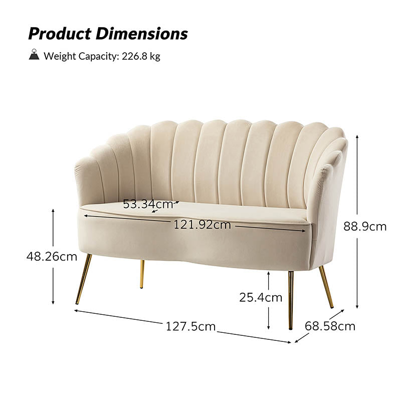 I love my sofa cozy and practical. Soft velvet fabric and color, beautiful. Easy to arm and easy to move around when I cleaning. And the most is an easy piece to make a big statement. My only suggestion is the delivery, I wish it was better packaged. Miré love