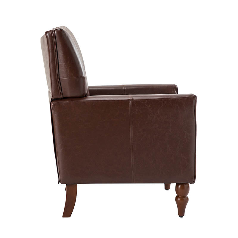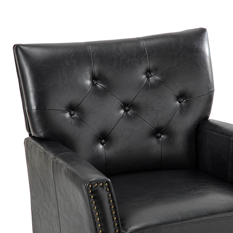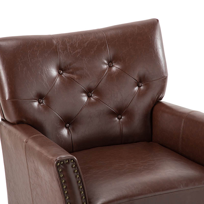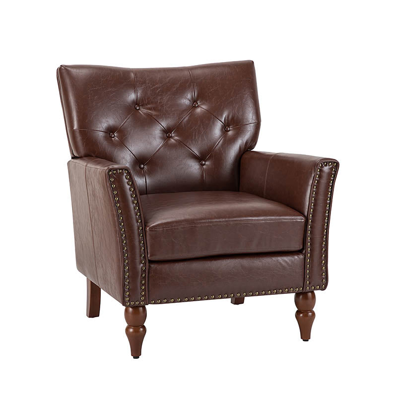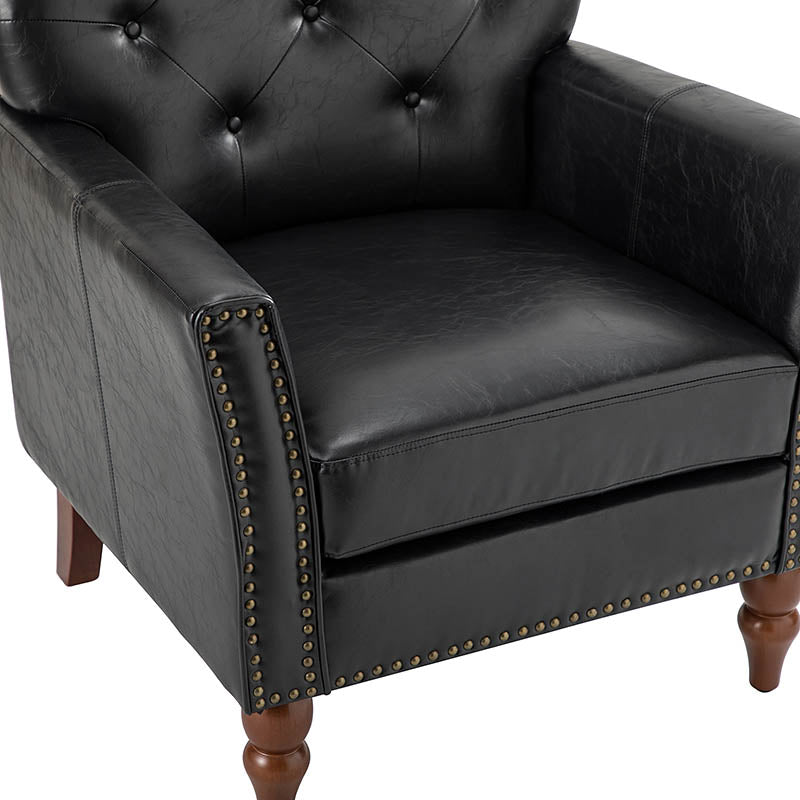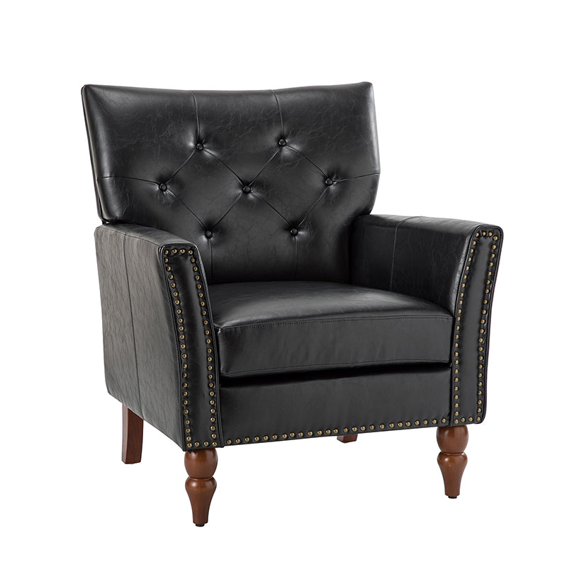 With plenty of space, this classic armchair will become your favorite lounge area. Its button-tufted back and nailhead trim design add to the sophisticated shape and it will be a great addition to your home or office space. This armchair features a solid and manufactured wood frame and four walnut solid wood legs for stability on the floor. The soft armrests support the relaxation of the arms and the whole body is stable and soft, feeling relaxed and comfortable. The cushion is filled with thick foam and sinuous S spring, so you won't feel stiff even after sitting for a long time, greatly easing the fatigue of the day. When you have guests, be sure to make it your armchair as they flock to its inviting embrace. Come and buy it now!