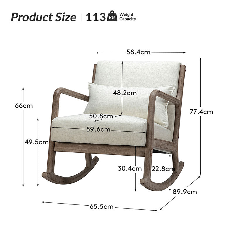 Covered in soft fabric with a solid hue, the padded seat and back provide comfort and visual appeal, making this rocking chair a perfect choice for relaxing moments. Whether you’re sitting by the window or out on the balcony, this chair is the ideal spot to unwind and enjoy the view.