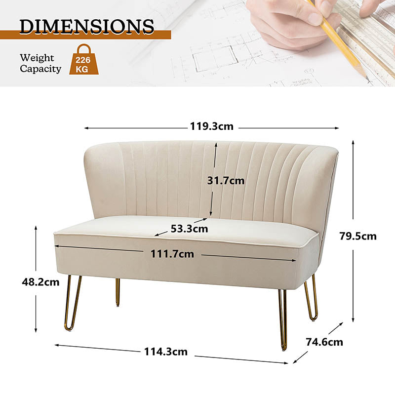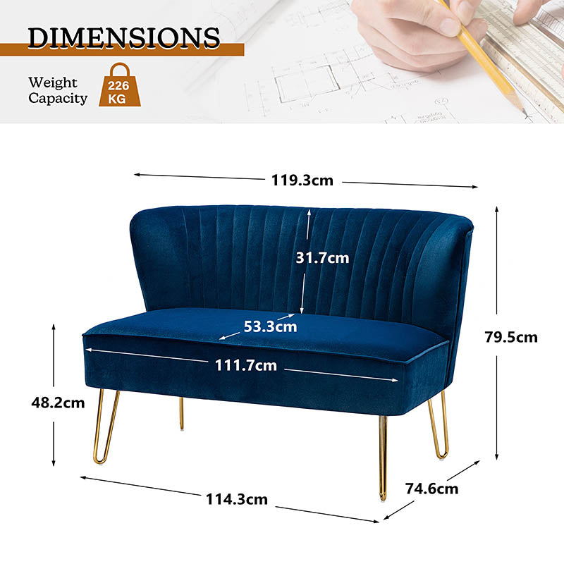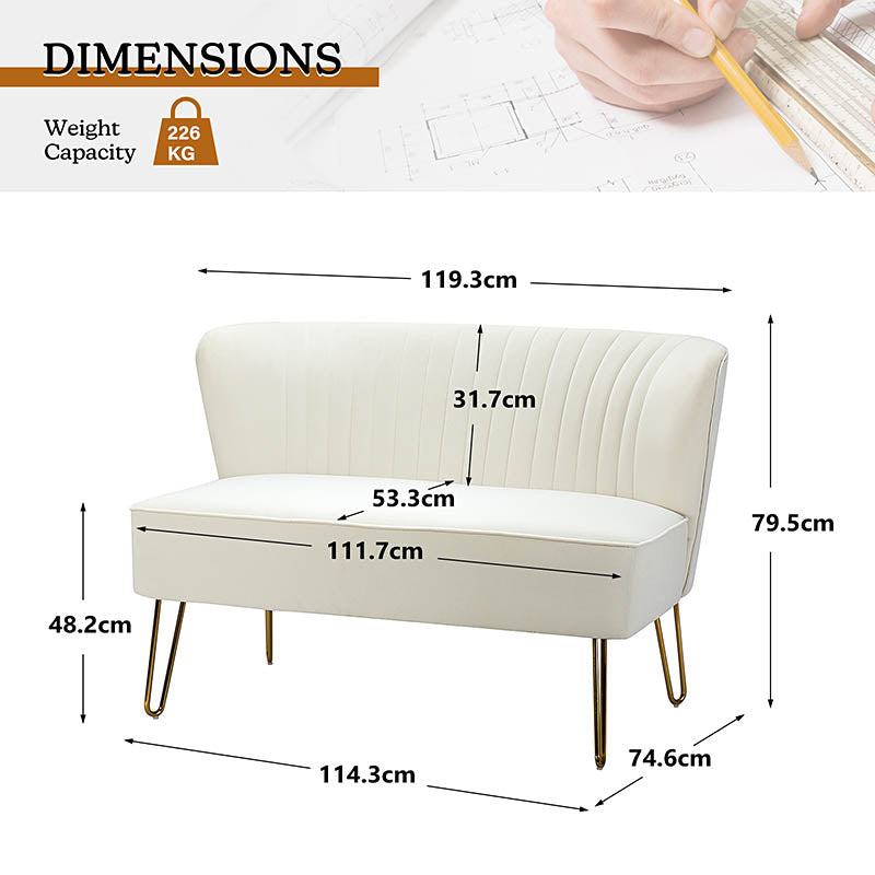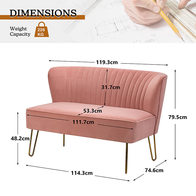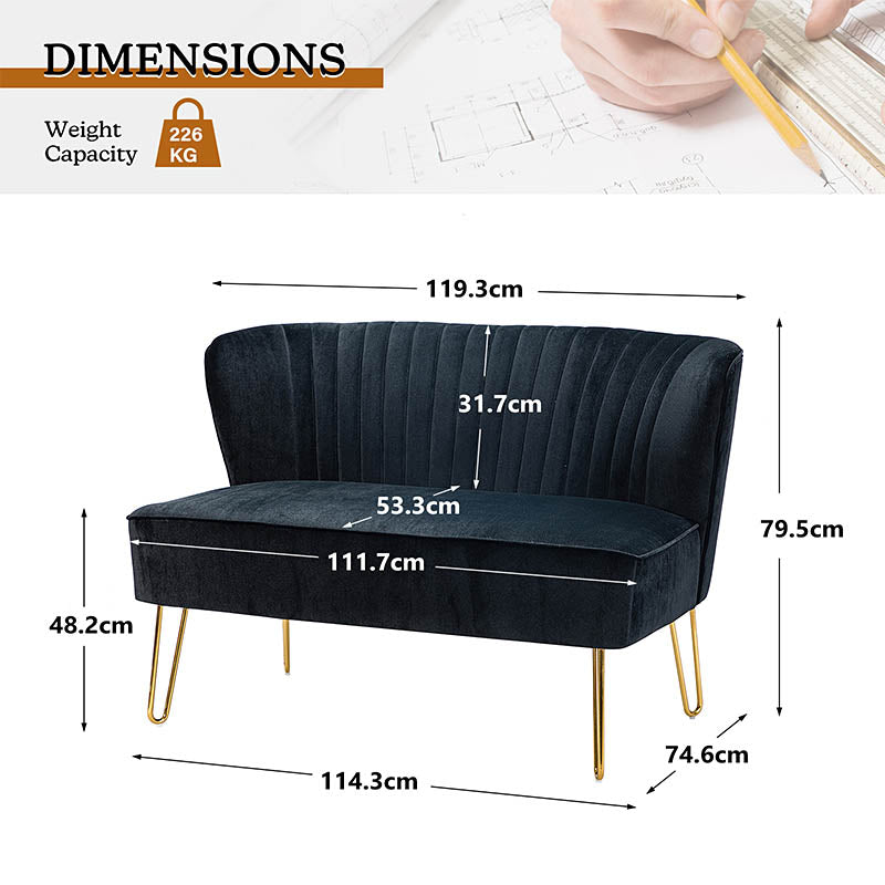 Comfort meets elegance with this Loveseat! The plush cushions make it incredibly cozy, and the velvet material is soft to the touch.