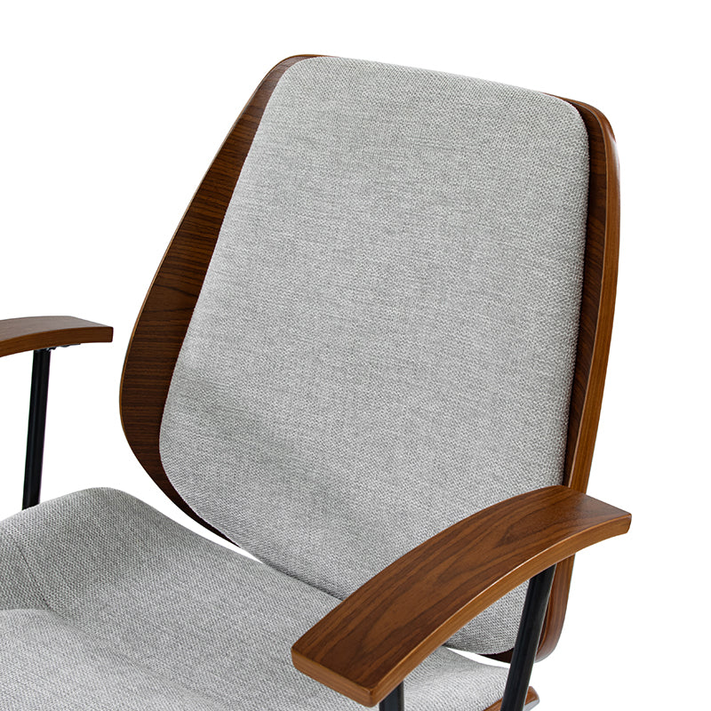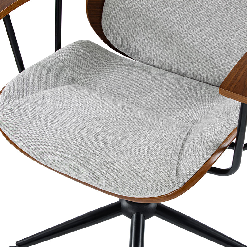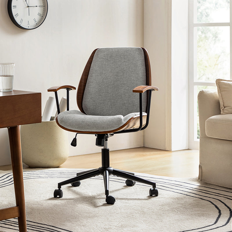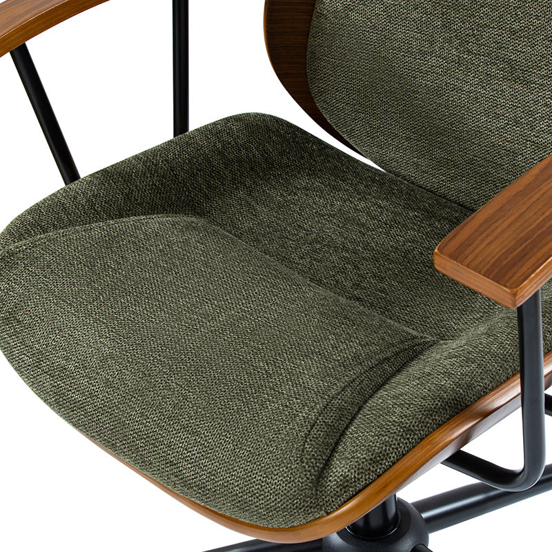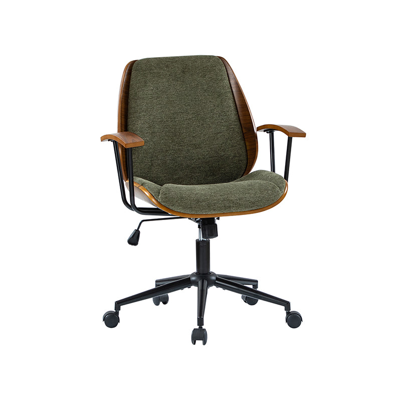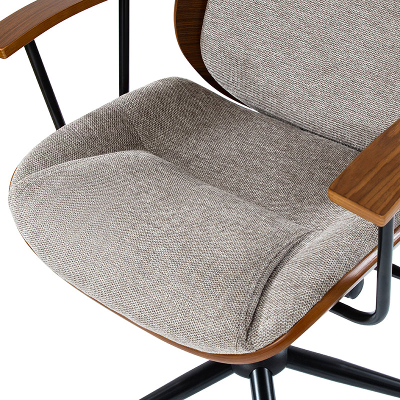 The versatile office chair combines comfort and functionality, making it a great addition to your living room, bedroom, or office. Crafted with a solid wood armrest, backrest, and seat, it exudes a natural charm while ensuring durability. The chair features a soft cushioned design that offers comfort and a snug, supportive feel, perfect for hours of sitting. With its smooth swivel function and adjustable height, you can easily adapt the chair to your preferred working or resting position. It also includes a gentle rocking mechanism, allowing you to relax and unwind during breaks. Whether working at your desk, reading a book, or simply lounging, this office chair blends style and comfort.