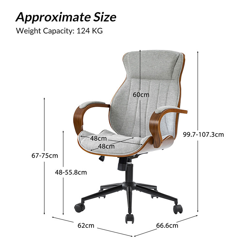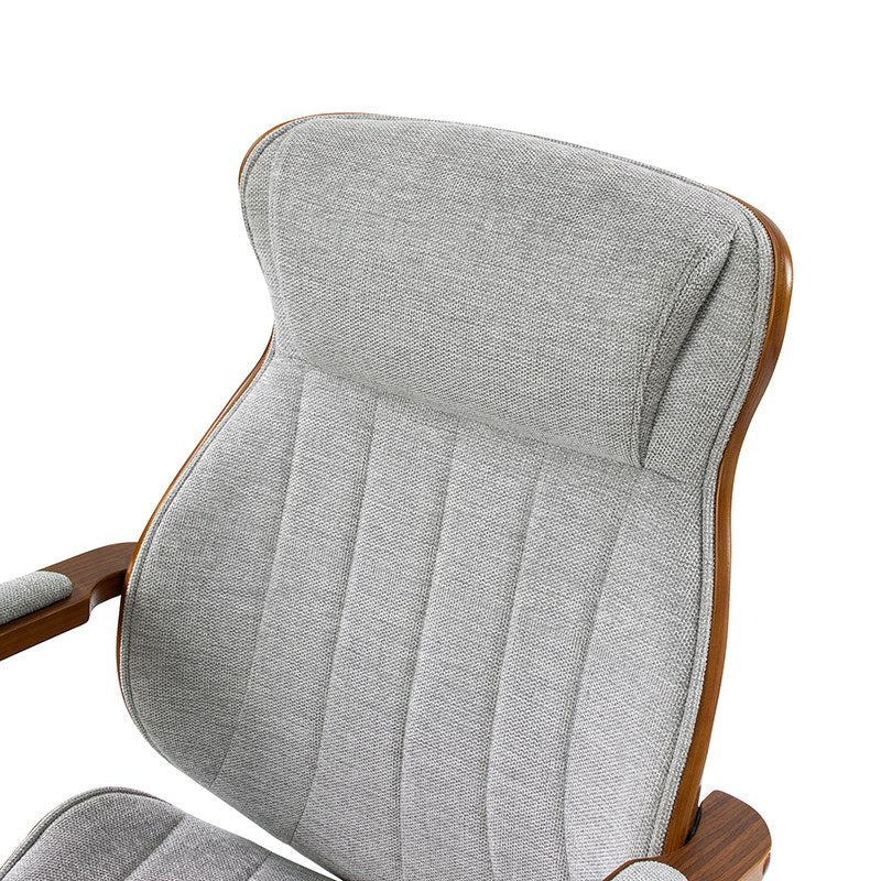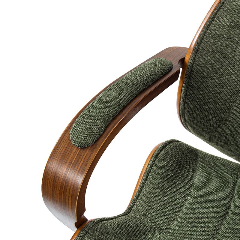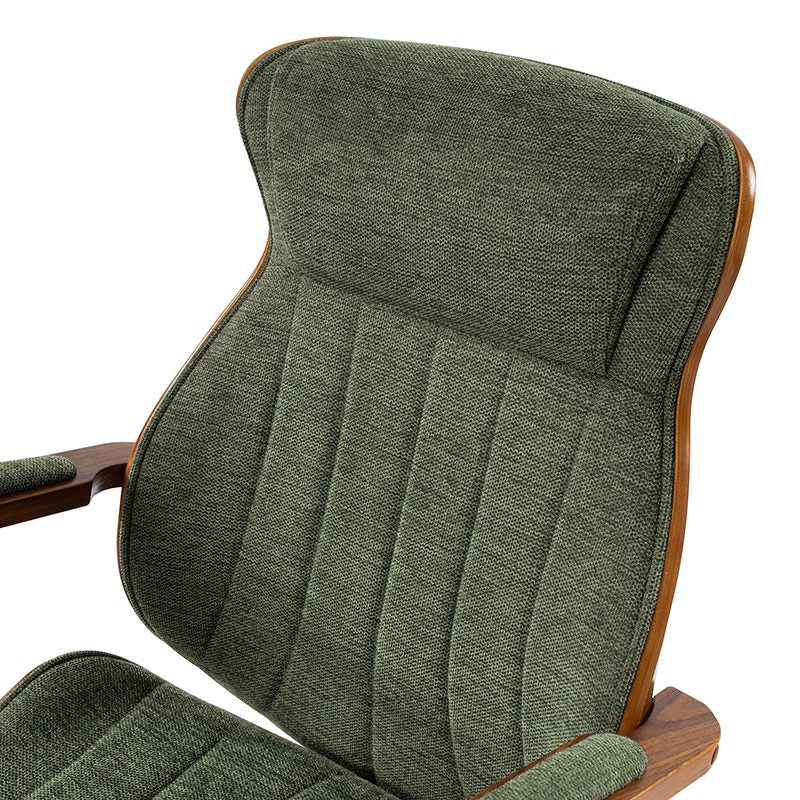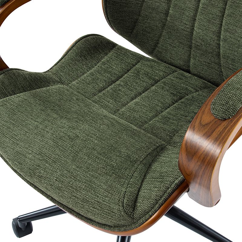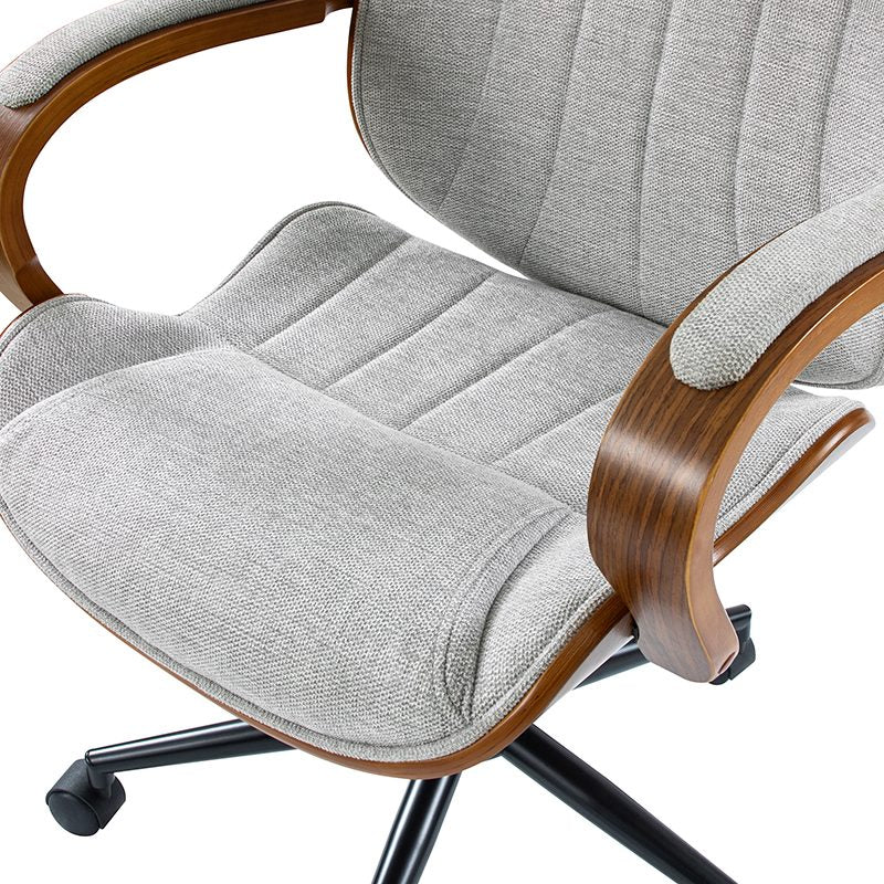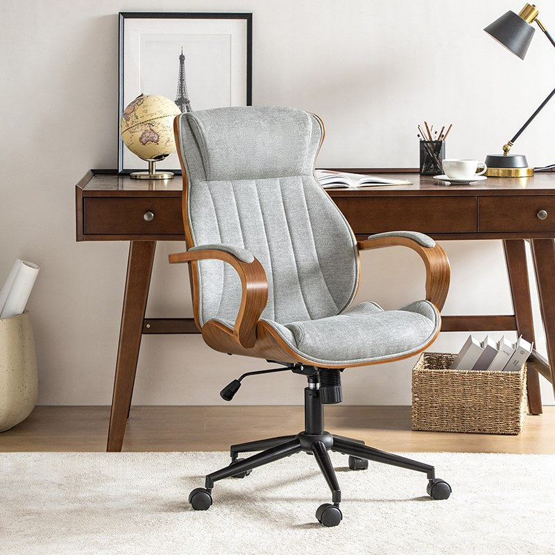 Experience comfort with the premium office chair, designed to enhance your work environment. The chair features a plush headrest that cradles your neck for support, while the ergonomic design ensures a snug fit, providing all-day comfort. Its solid wood armrests are paired with soft padding, offering a refined touch and additional comfort during hours at the desk. This chair is equipped with a 360-degree swivel mechanism, allowing you to move effortlessly and access different areas of your workspace without needing to get up. It's height adjustable, enabling you to find the position for your desk and ensure optimal posture. For added versatility, the chair includes a rocking function, allowing you to lean back and relax or adjust the tension to suit your preferences. Whether you're tackling a busy workday or taking a moment to unwind, this office chair combines style, comfort, and practicality to meet different needs.