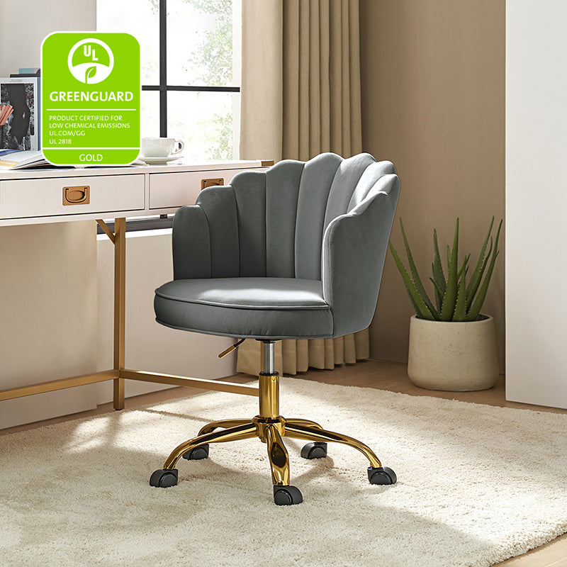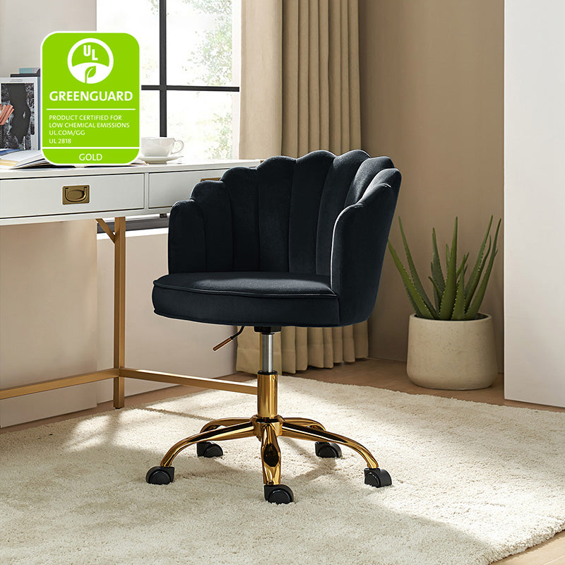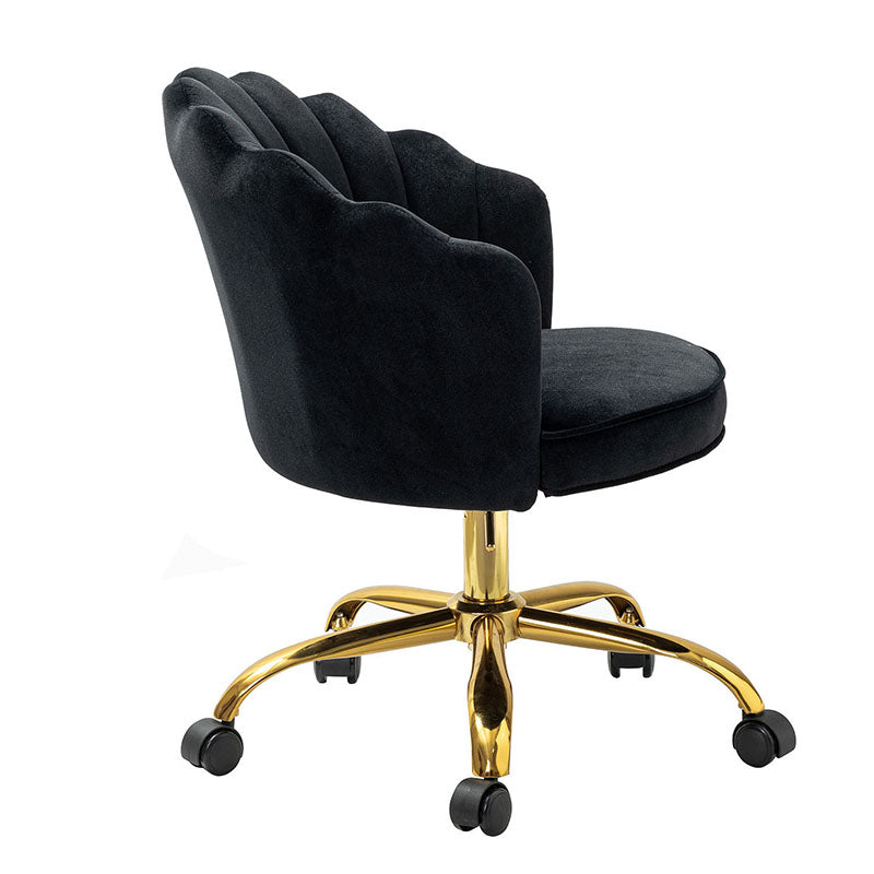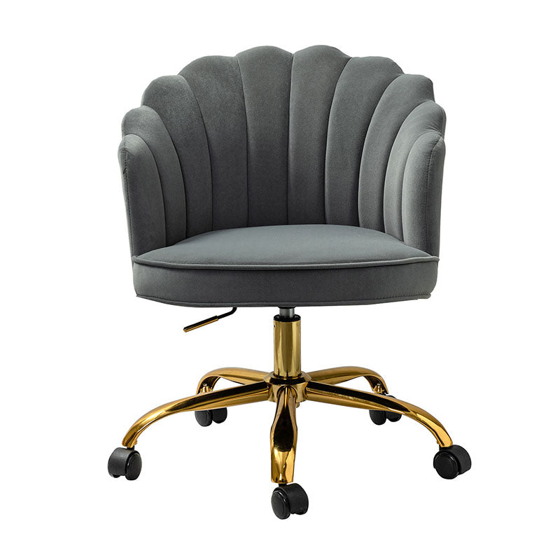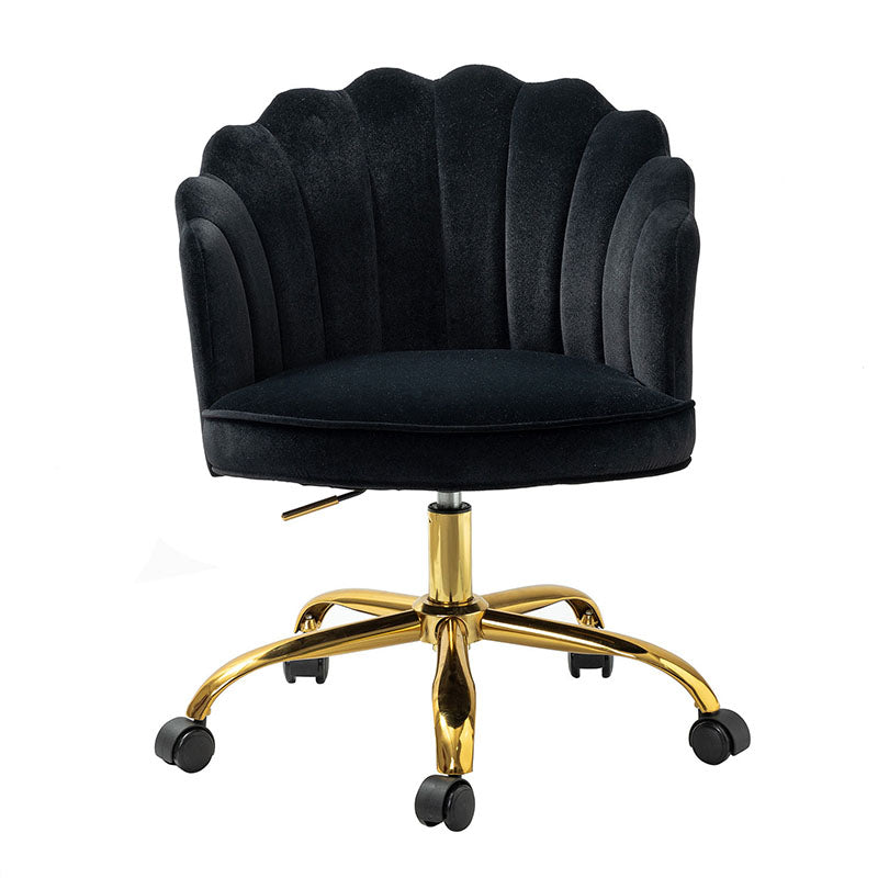 I'm so glad I invested in this chair! The golden metal base is sturdy, and the velvet upholstery is easy to clean. It's a stylish and functional piece for any office.