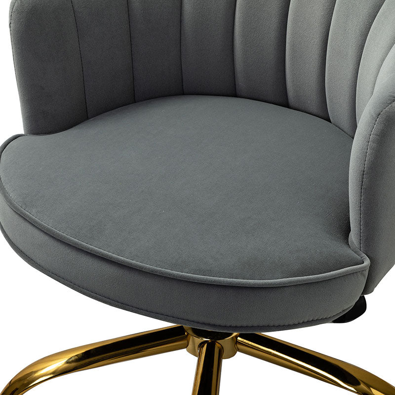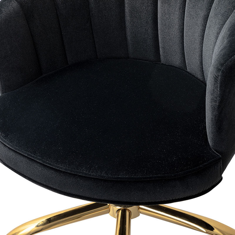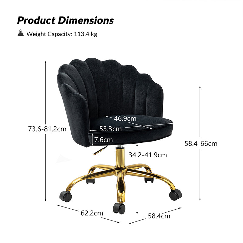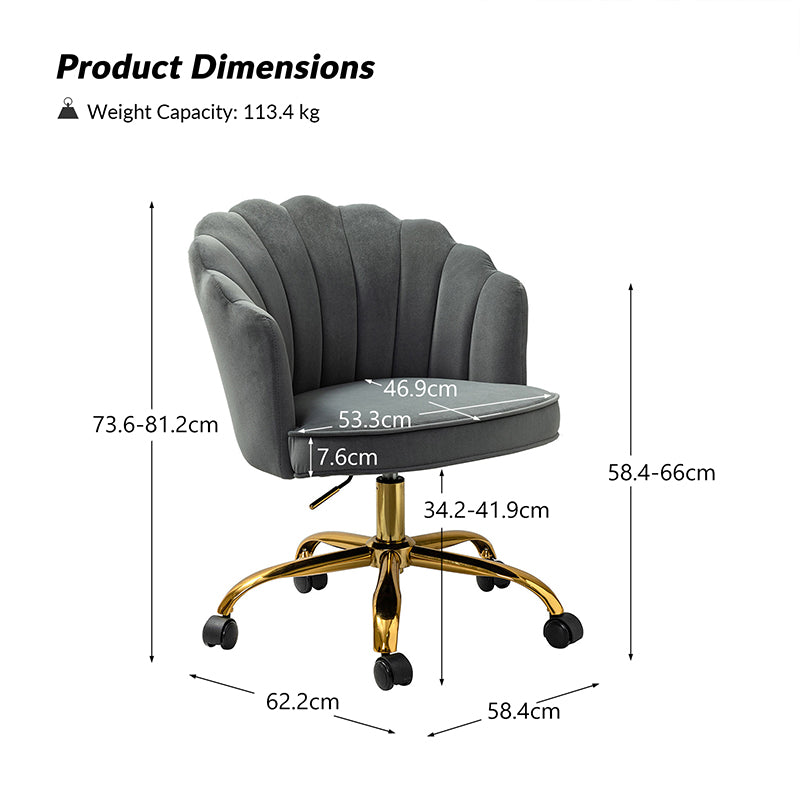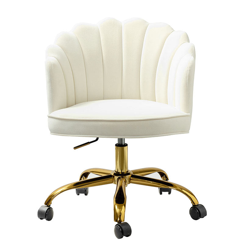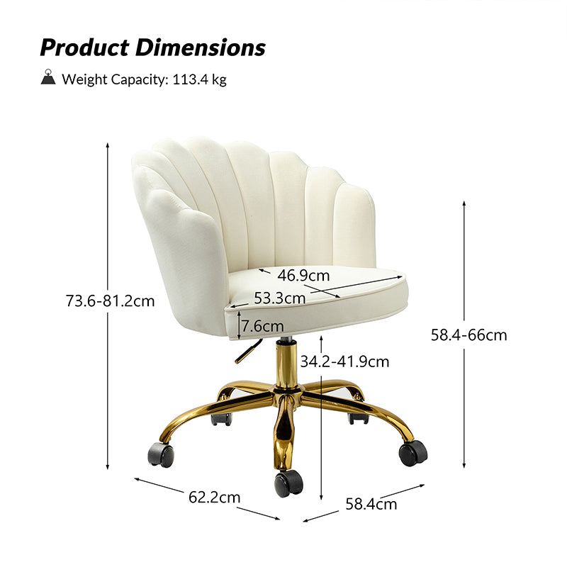 I'm so glad I invested in this chair! The golden metal base is sturdy, and the velvet upholstery is easy to clean. It's a stylish and functional piece for any office.