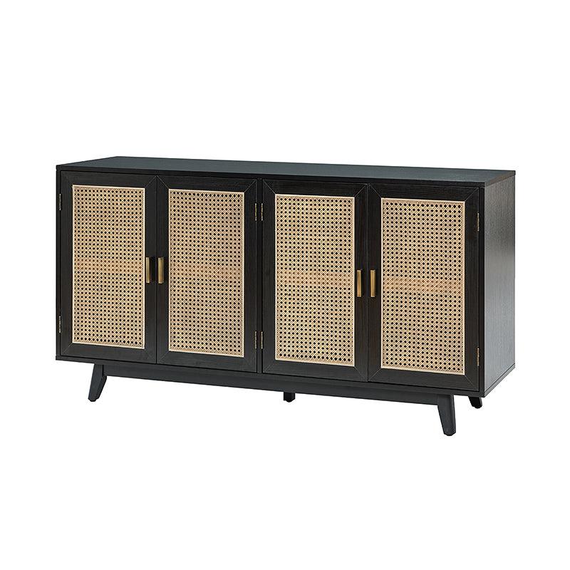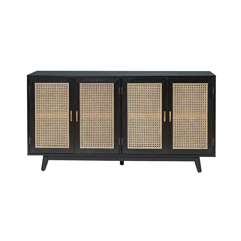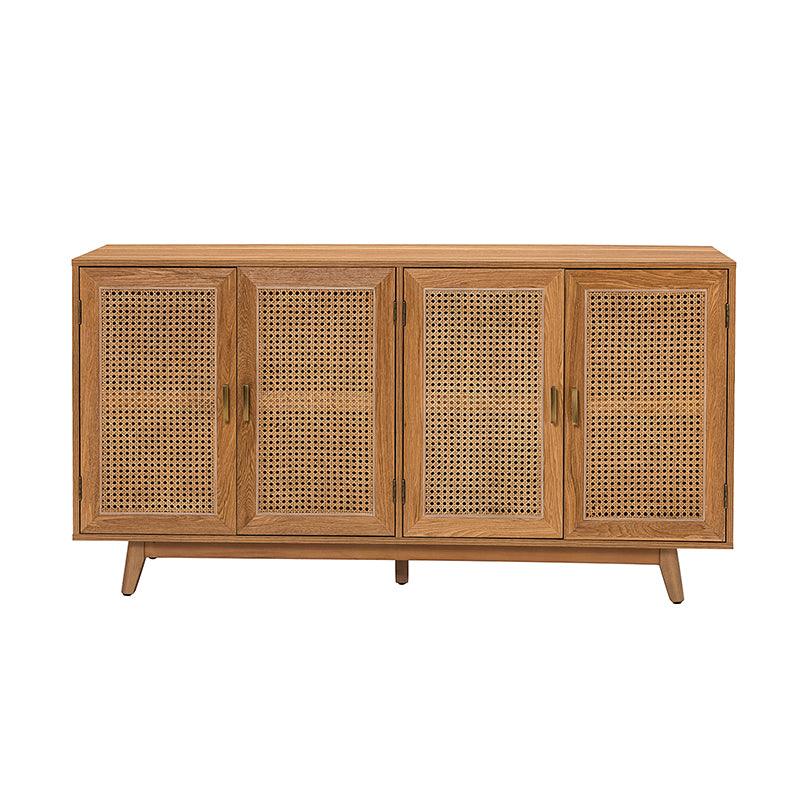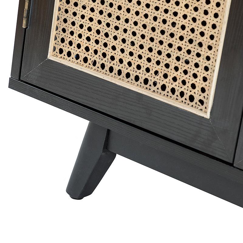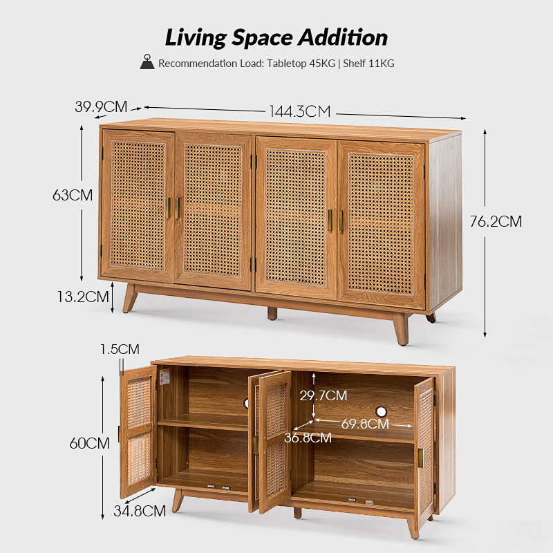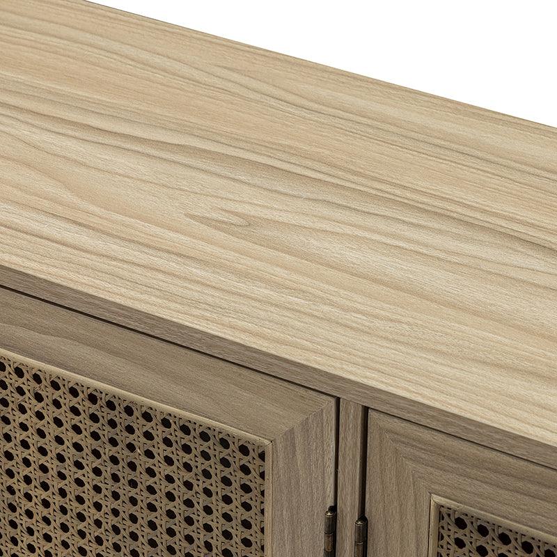 Say hello to this versatile furniture that offers hidden storage as well as beauty and warmth. This standard TV stand combines a sturdy wood frame, featuring four wood doors with a rattan design for a trendy, natural look. Inside, two shelves provide plenty of space for your media players, games, and DVDs. Doors are adorned with a classic metal handle allowing you easy access to your belonging. At the same time, the flat top surface is the perfect area for houseplants, books, TV, and other decorative accents. A good thing can't wait, don't hesitate to add it to your cart!