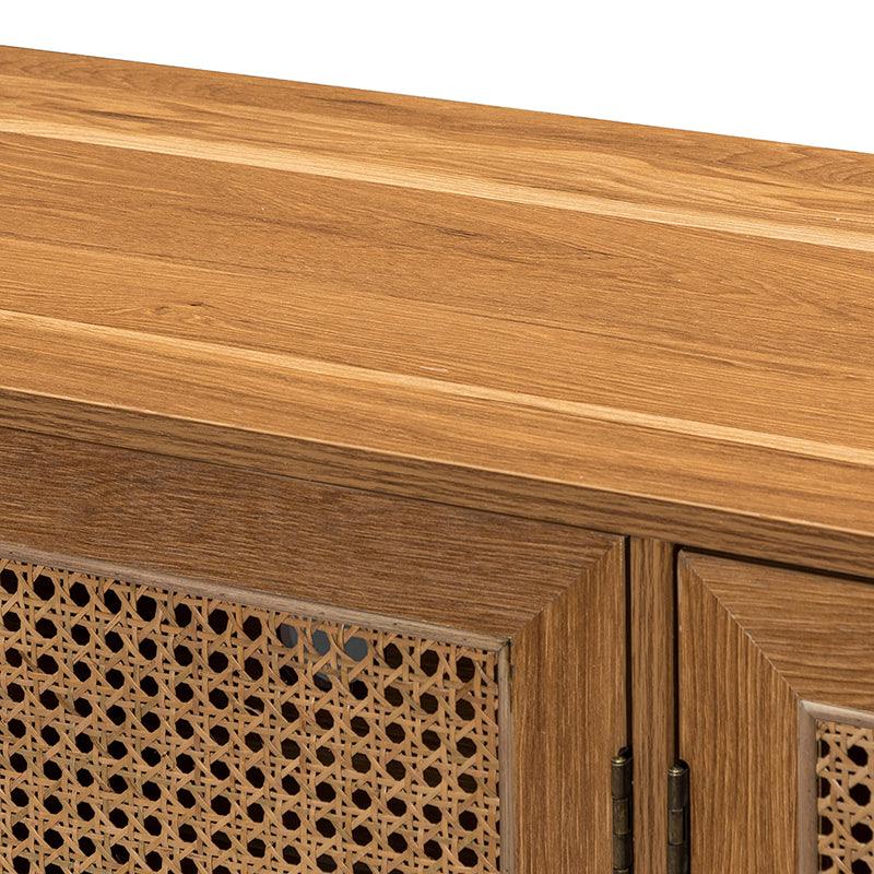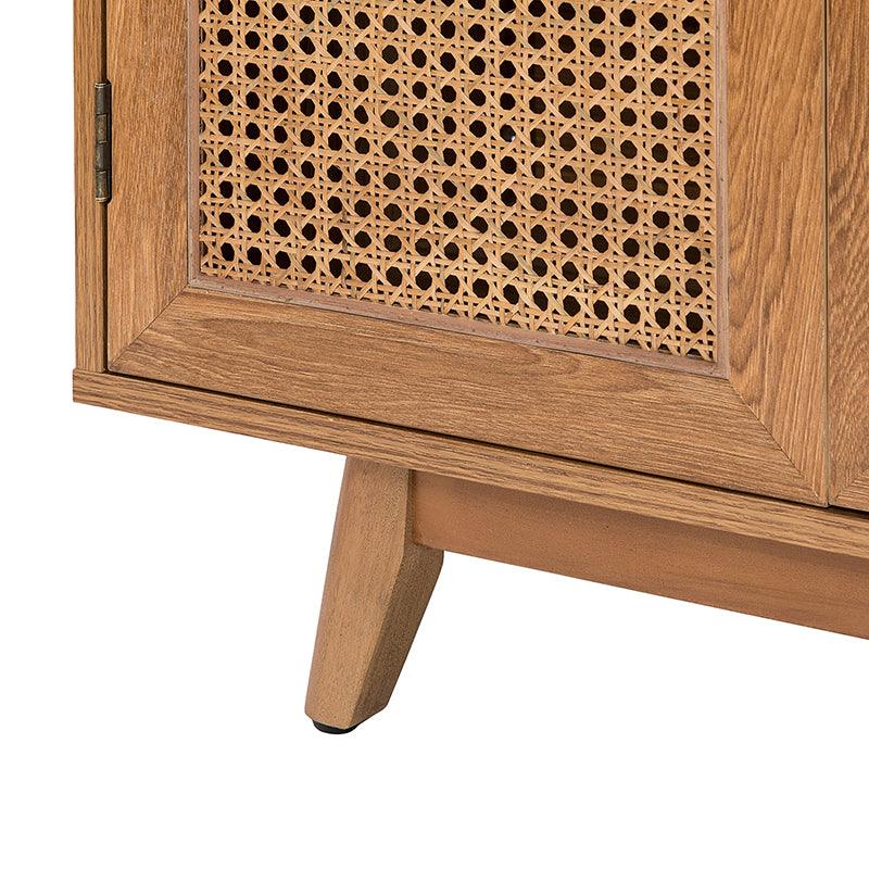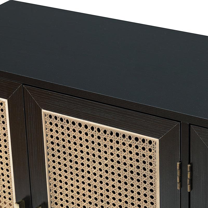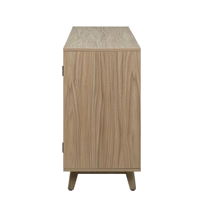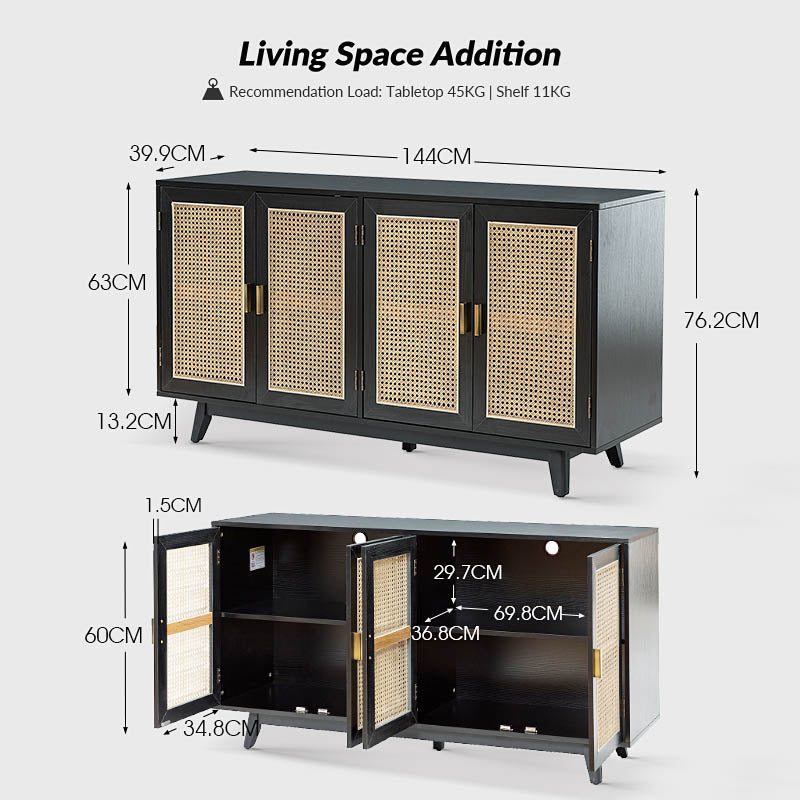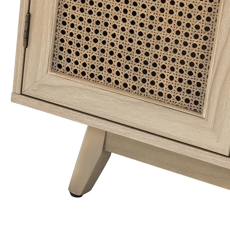Say hello to this versatile furniture that offers hidden storage as well as beauty and warmth. This standard TV stand combines a sturdy wood frame, featuring four wood doors with a rattan design for a trendy, natural look. Inside, two shelves provide plenty of space for your media players, games, and DVDs. Doors are adorned with a classic metal handle allowing you easy access to your belonging. At the same time, the flat top surface is the perfect area for houseplants, books, TV, and other decorative accents. A good thing can't wait, don't hesitate to add it to your cart!