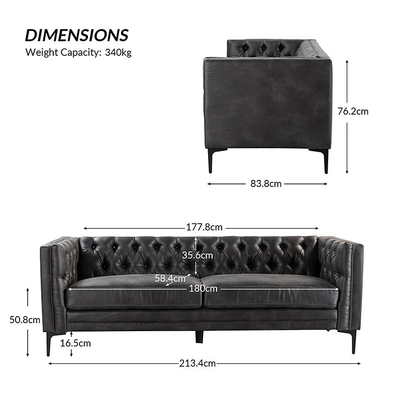 Item Size: 213.4 cm W x 83.8 cm D x 76.2 cm H
