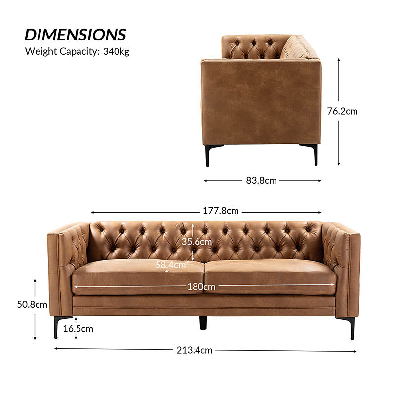 Seat Size: 180 cm W x 58.4 cm D x 50.8 cm H
