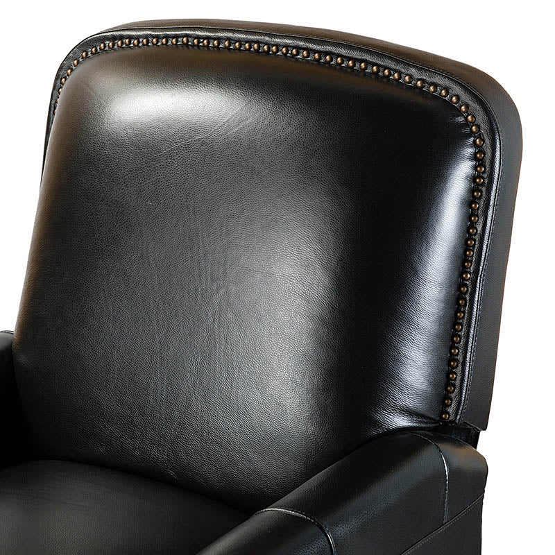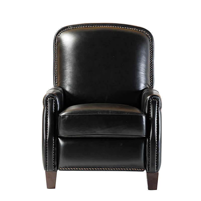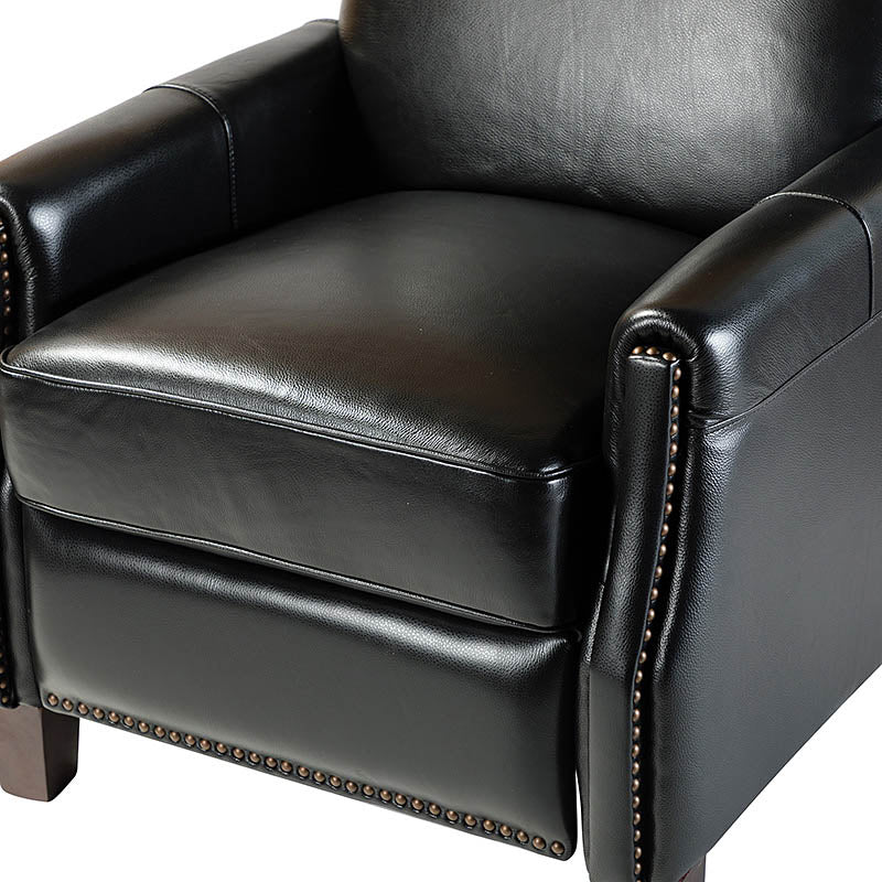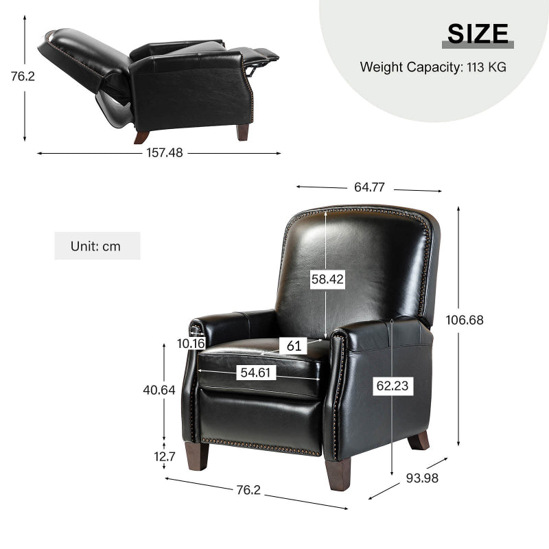 Give your favorite space a little extra oomph with the Claudia genuine leather recliner - its sophisticated mid-century modern style will make it feel like you've taken a step back in time to finish off that cozy, perfect spot. And since there's no levers or buttons required for this functional piece of furniture, all it takes is one gentle push and you can transform from upright luxury to total relaxation mode! It will be right at home in any living room, media den or master bedroom. The recliner chair is made of top layer leather, elegant genuine leather with nice hand-stitching, which is wear resistant and easy care. It has thick cushions padded with high-density sponges and wide seating space, which is supportive when sit in the chair but yet very comfortable. A feature of overstuffed double layer backrest can well support your neck and lumbar when you lie down. It is ideal for reading, watching TV and resting.