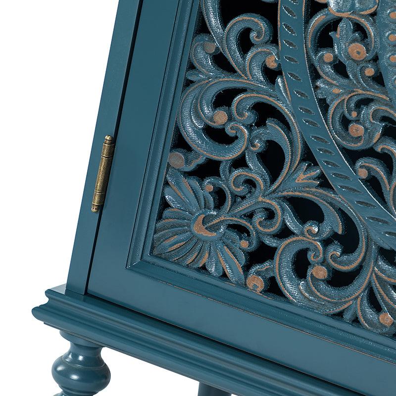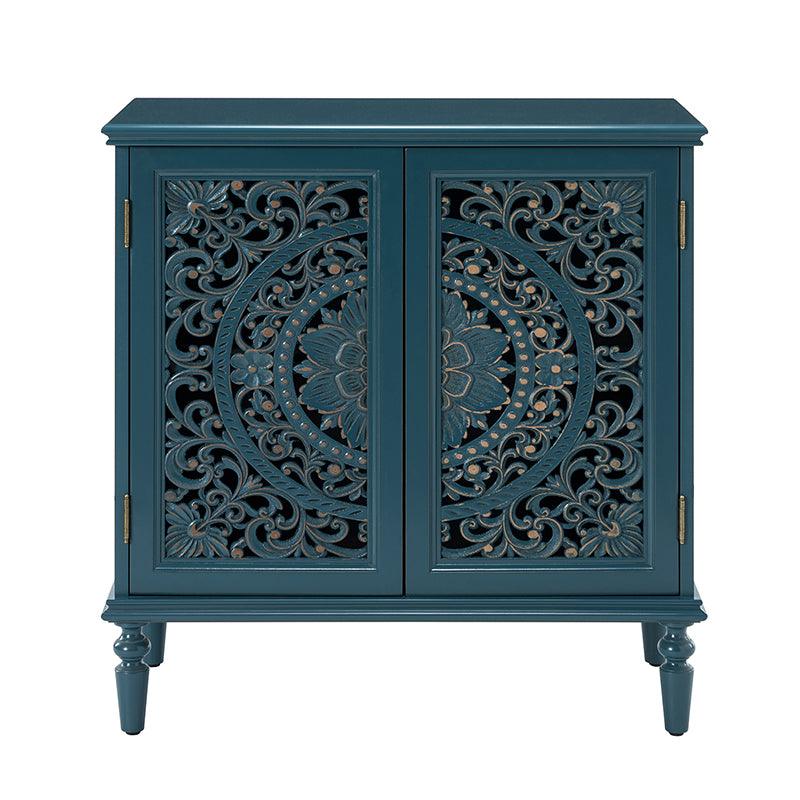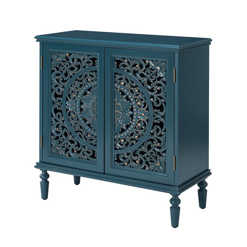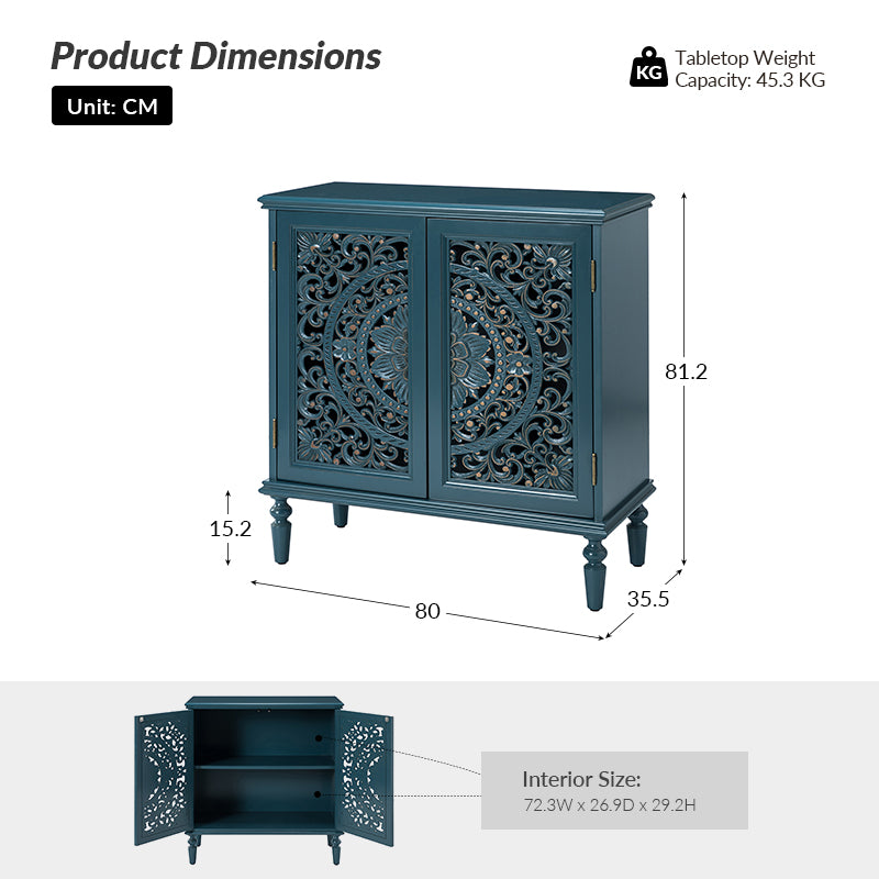 I absolutely love this cabinet. It came well packaged without a scratch or nick. The deep teal color is beautiful and looks just like the picture. The carving is very nice. I am a 61 yo woman and I put this together by myself. Everything was included , even a Phillips screwdriver. I just wish it was 4 more inches in height and 10 more inches in width.