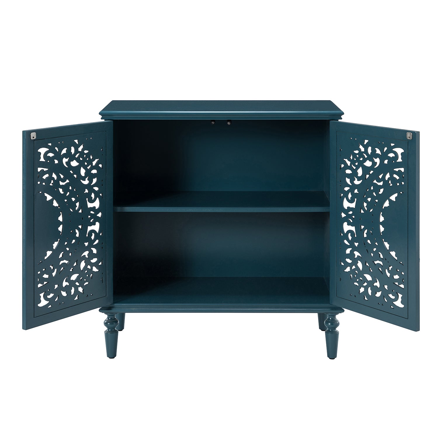 I'm impressed with the durability of this accent cabinet. The doors close securely, and the color matches my existing furniture perfectly.
