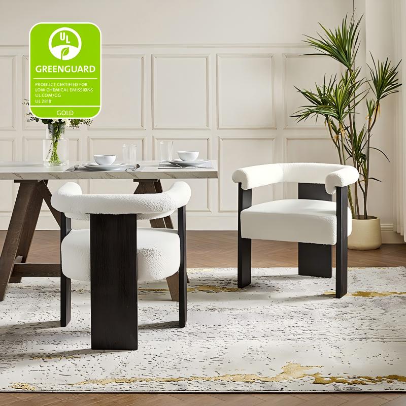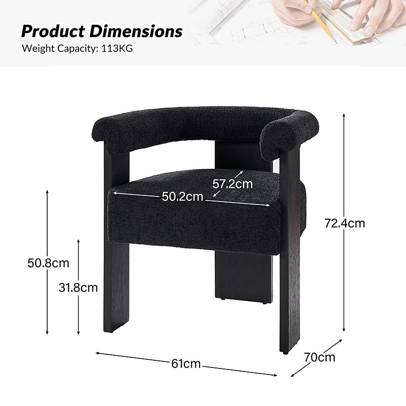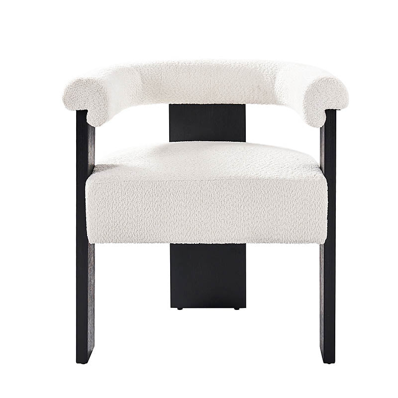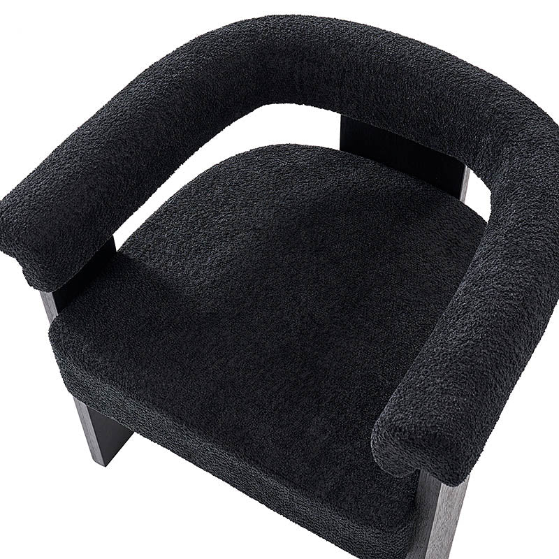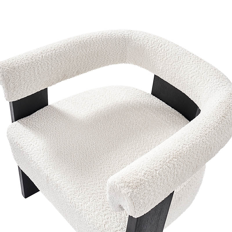 The dining chair epitomizes modern elegance with its sleek design. Upholstered in quality boucle fabric, the dining chair offers a tactile and inviting seating experience. Its lamellar foot ensures stability and durability, while the rubber wood solid wood legs provide a natural and sophisticated touch. The chair's solid back offers support, promoting comfort during meals or gatherings. The round backrest adds a contemporary flair, creating a visually appealing silhouette that complements various dining spaces. With a harmonious blend of comfort, style, and quality craftsmanship, the dining chair is not just a piece of furniture but a statement of refined taste and contemporary living.