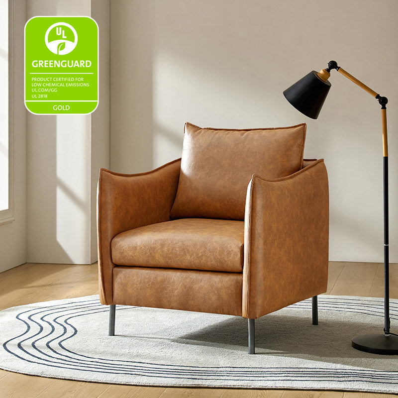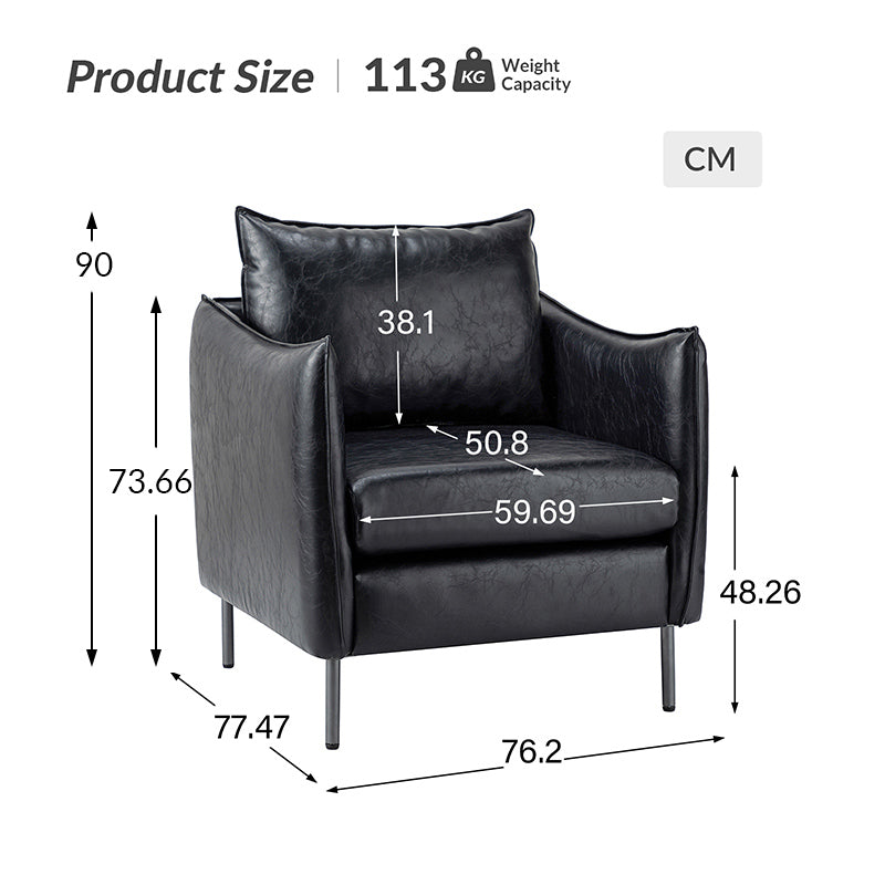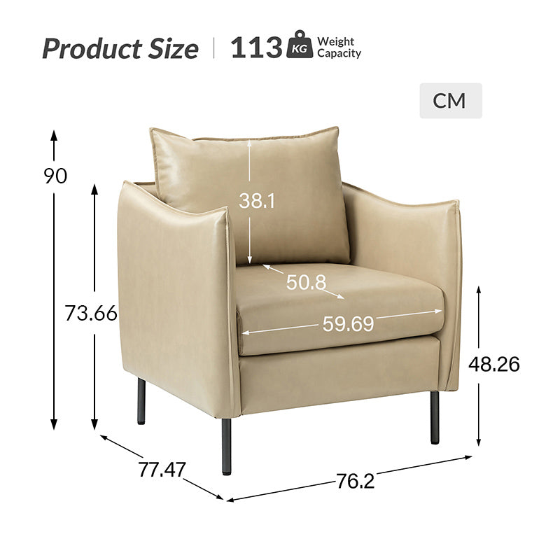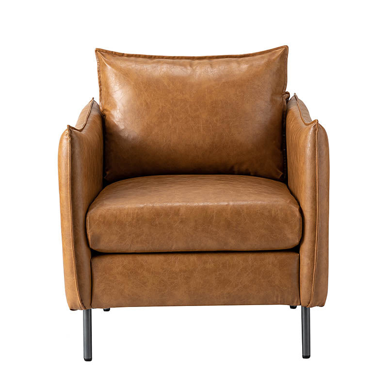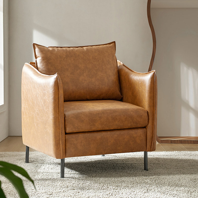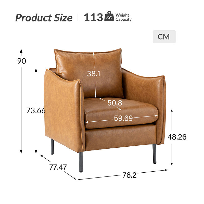 This premium armchair with a trendy shape and modern style brings a whole new look to your living room, office or study. This chair is made of a strong and durable frame that rests on sturdy metal legs. The frame is wrapped in premium leather upholstery that blends in with many of your decorating styles. The tight back and special armrests give you peace of mind, while the upholstered seat features foam and coil springs to support you while you watch TV. Plus, their cushions are removable, so cleaning is easy. You can place it in multiple locations to add sophistication and glamour to the overall environment.