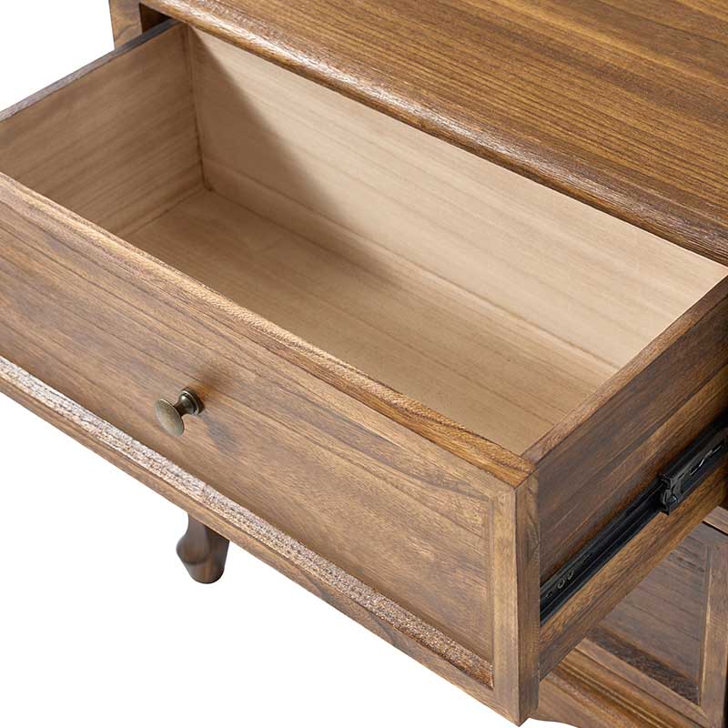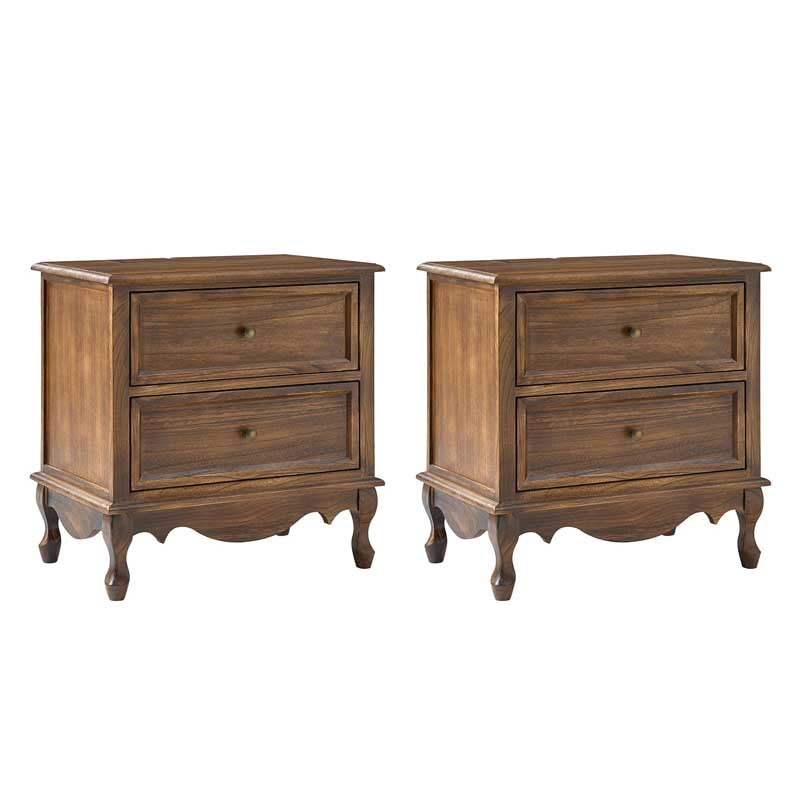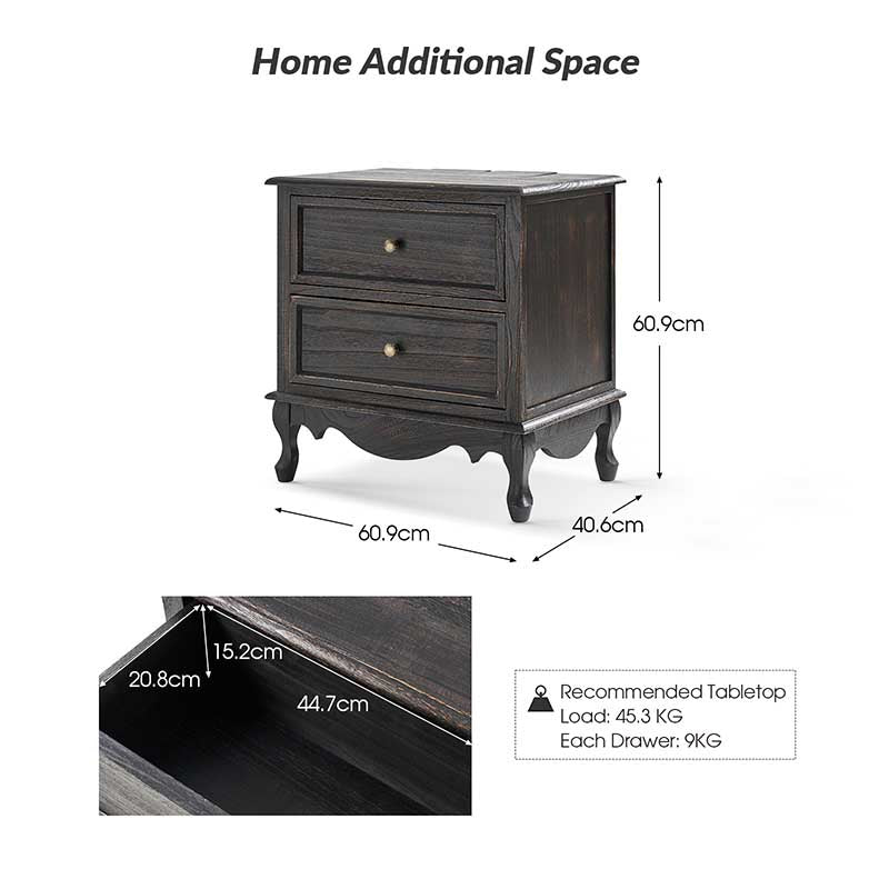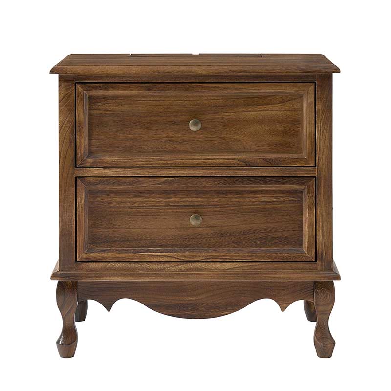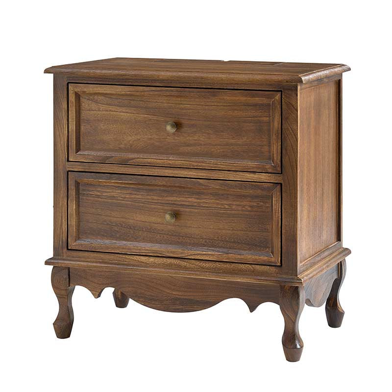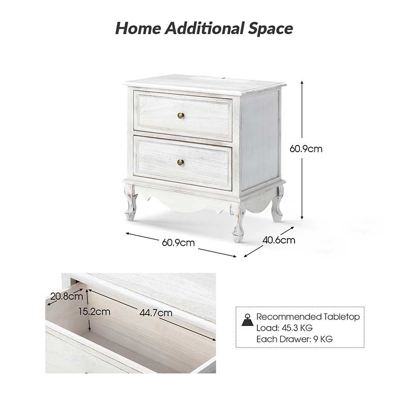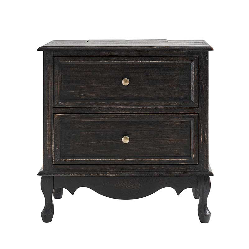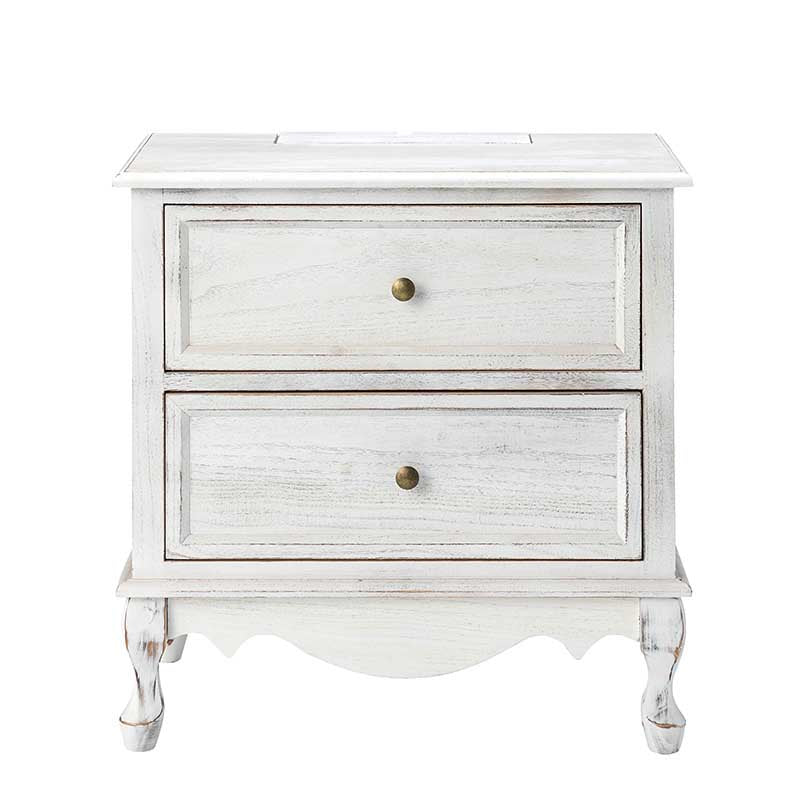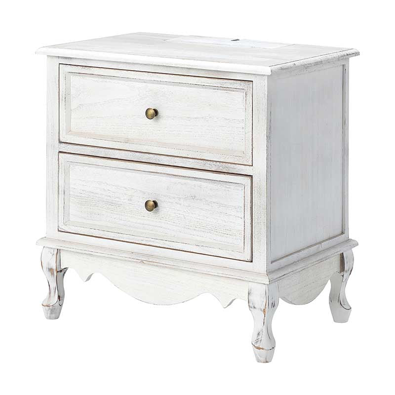 A marriage of comfortable experience and transitional style, this French country nightstand finished in a stylish yet glamorous profile is a good addition to elevating elegance. The nightstand includes 2 convenient and practical drawers with smooth metal drawer slides and durable metal handles. The top of the nightstand has a charging station space where you can charge your electronics and also manage your cords, helping you with annoying wires for a neater and more aesthetically pleasing look. Featuring a manufactured frame finished in a glamorous hue for perfect stability and durability, this reliable design can accompany you for a long time and share. Made of a high-quality wood frame, this sturdy frame showcases sleek lines and boasts a geometric shape, adding a striking look to your room. Wake up your style with this chic nightstand and put some sophistication into your daily routine, from the bedroom to the living space.
