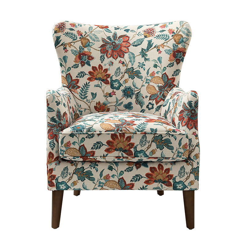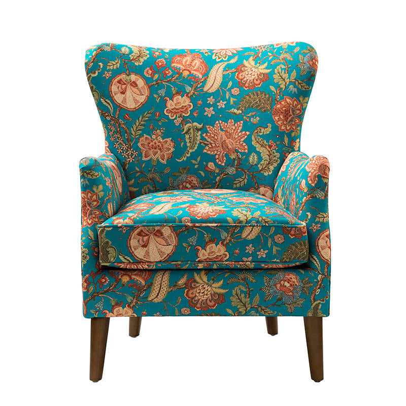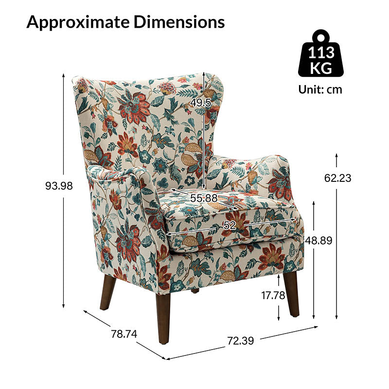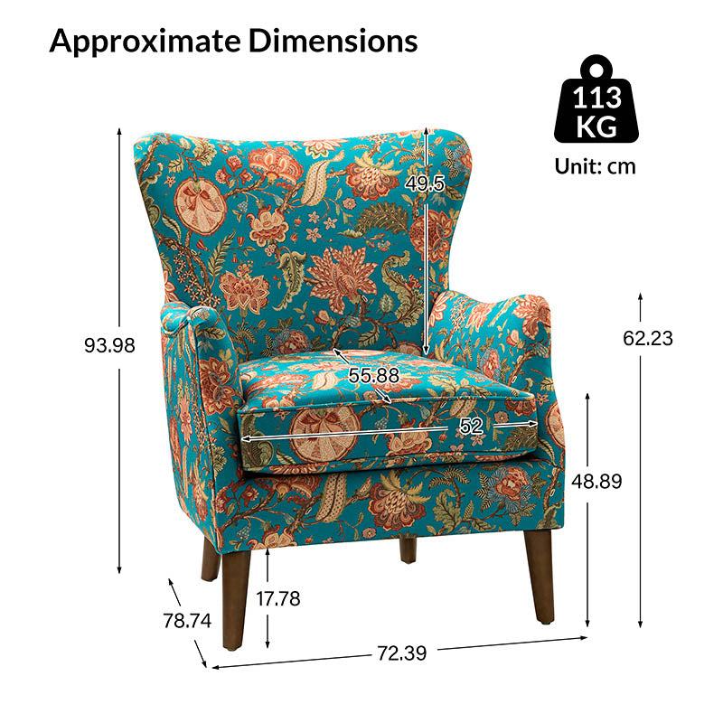 The classic style of this armchair exudes timeless charm and is sure to become a much-loved addition to your living space. Crafted from both solid and manufactured wood, the chair's frame stands on sturdy brown hardwood legs. The sinuous S-springs and spring pocket provide excellent support to prevent sagging over prolonged use, ensuring it can be enjoyed for many years. The foam is covered in a patterned jacquard fabric, and the wingback design of the back, as well as its unique Englished arms, provide a supportive place to relax and unwind while watching TV or enjoying the ocean breeze. With its handsome design and durable construction, it's the perfect combination of style and practicality, adding a touch of sophistication to any room in your home.