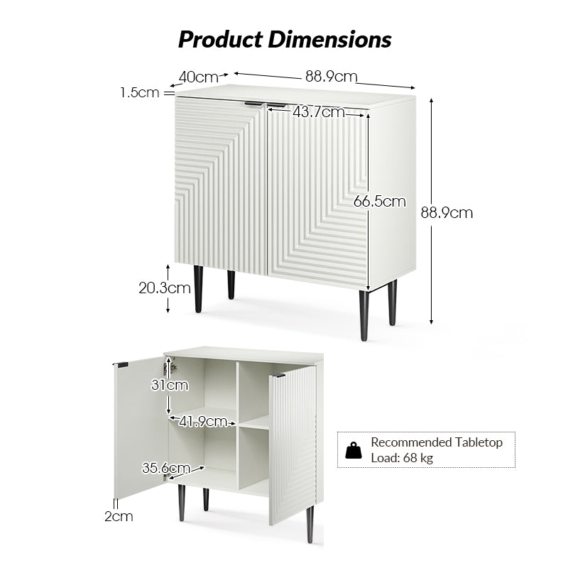 This cabinet comes with a linear groove design and novel colors that are compatible with a variety of living styles and home decor, adding a modern and elegant touch that highlights the beauty of your house. The water and the stain-resistant surface is easy to clean. The textured design on the cabinet doors attracts proper attention. Two spacious storage compartments make this piece the perfect solution for anything you want to put in it. Add extra storage space to your living space with this cabinet.