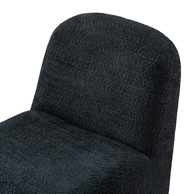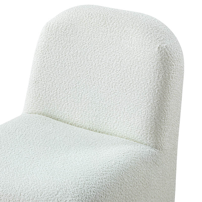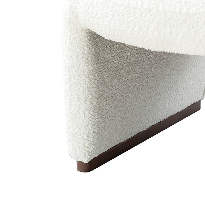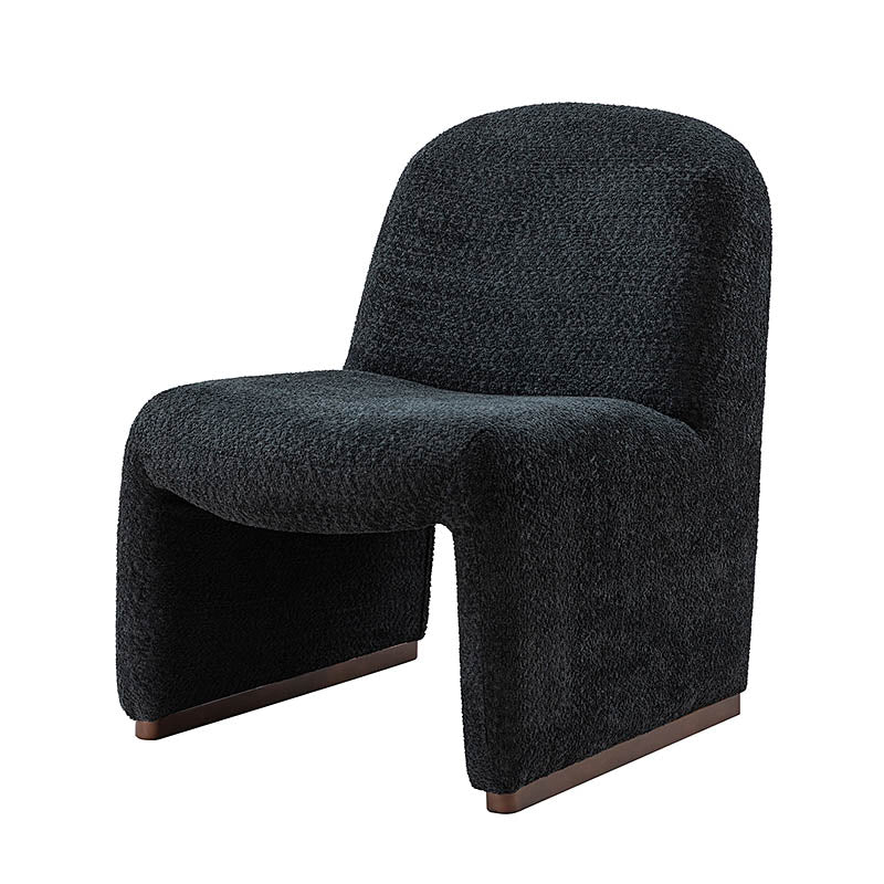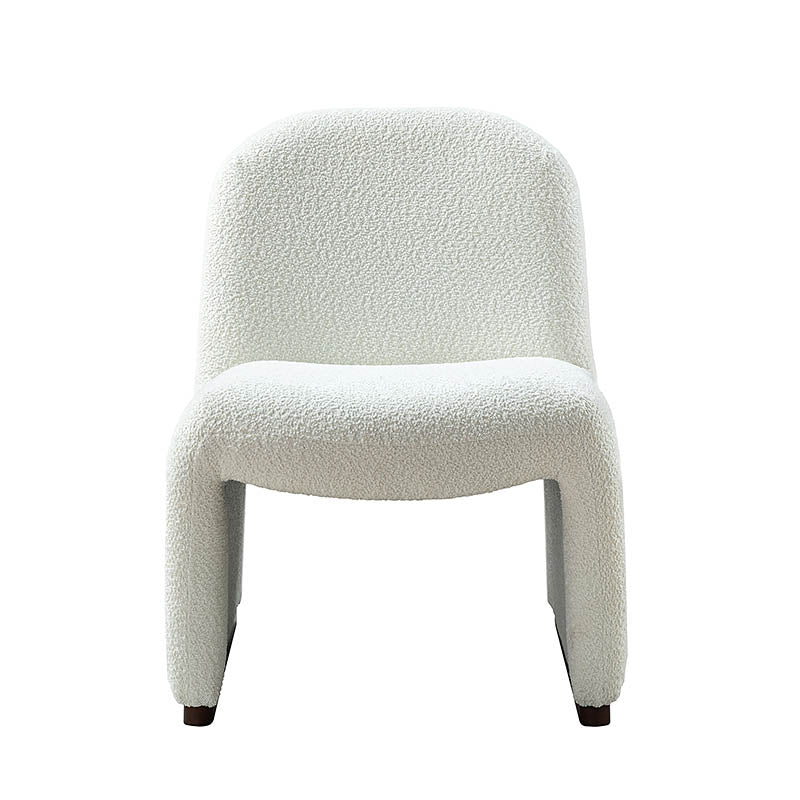 Striking an elegant silhouette with an arcuate seat, simplified profile, and soft curves, this streamlined side chair is the best statement of the modern update. Upholstered from the feet to the back of the mid-century accent chair in a beautiful Boucle, it's a perfect pick to sink in. Founded atop hardwood legs that feature an alluring walnut hand-crafted finish, the arcuate seat gradually releases the hip pressure from the middle to the sides. Exuding effortless appearance and function, the unique side chair seamlessly blends the comfort of Boucle with an ergonomic design. this side chair offers maximum seating in minimum space, making it a versatile addition to various areas such as your living room, bedroom, office, or study. Whether you place it next to a sofa or pair it with an ottoman, it effortlessly adds glamour and a touch of bohemian flair to your interior decor. Plus, you can enjoy the convenience of not having to worry about assembly, as this chair comes ready to enhance your space with its boho aesthetic and functional design.
