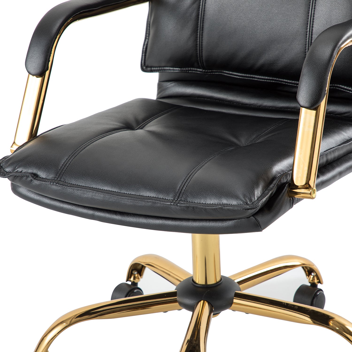 This chair is awesome. The leather material is so soft and luxurious feeling and it's a true black which I was happy about. It has more than enough padding for me to sit at my desk for 10 hours without discomfort. I didn't want a chair with lots of bells and whistles, just something comfortable that kept my posture upright all day and this does just that, plus it's super stylish! I can tell that the coating on the metal will scratch easily but I can live with that bc nobody sees that part of the chair except for me if it does happen. Also, it was the perfect height for my standard size desk at work. Sooooo happy with this purchase!!