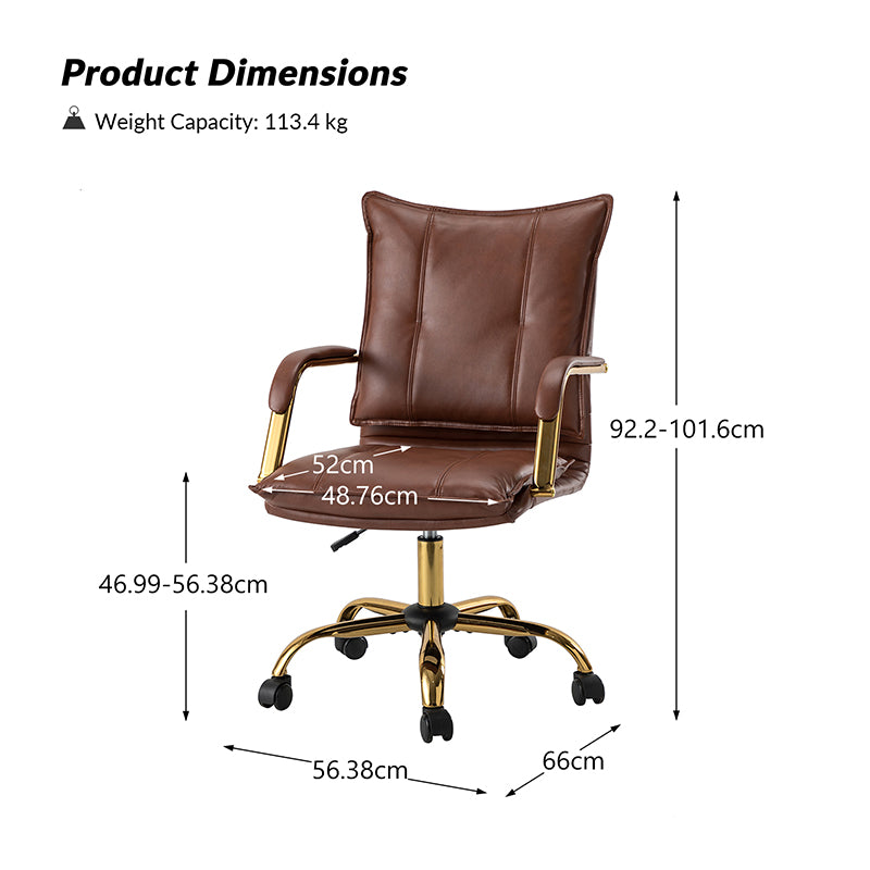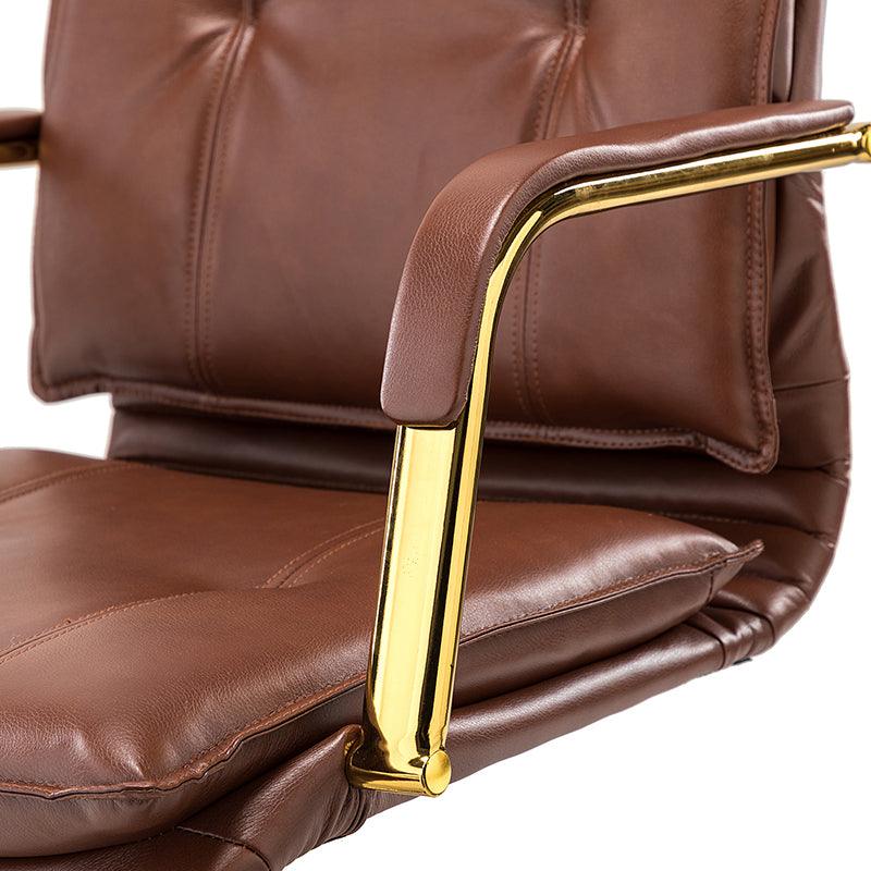 I absolutely love it! The brown color gives it a classic, timeless look, and the gold-colored arms match so well with the leather that the entire design exudes elegance and beauty. Its not just about looks, though the chair was surprisingly easy to install. I had it set up and ready to go in no time, which was a huge relief. Its comfortable too, making it perfect for long hours at my desk. The quality of the materials feels top-notch, and the combination of the luxurious leather with the chic gold accents really makes my workspace look more sophisticated. If youre in the market for a chair that not only looks great but is also easy to assemble and comfortable for daily use, this leather task chair is definitely worth considering.