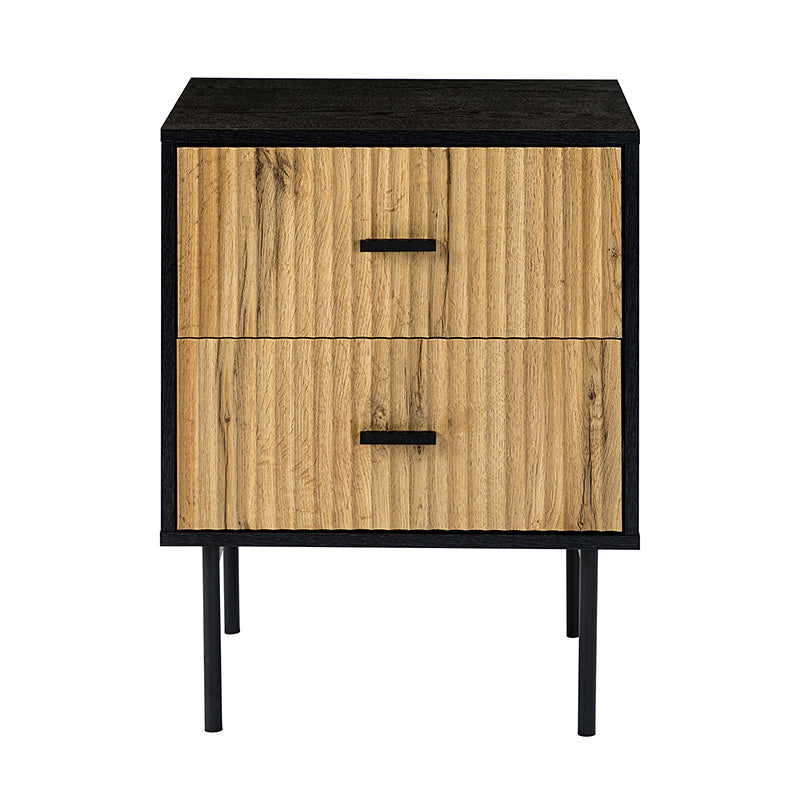 Bring a dramatic focus to any room with this charming nightstand. With a boxy silhouette, it's understated and suitable for all decor palettes. Color and textural variations create a relaxed feel that is enhanced by a neutral finish on its sturdy manufactured wood frame. Two pull-out standard drawers with pleated surfaces add a hint of elegance, providing various storage spaces to conceal annoying clutter while boasting contemporary glamors. Designed to bring you exceptional value, it helps you to create a functional living room, dining room, or bedroom storage options.