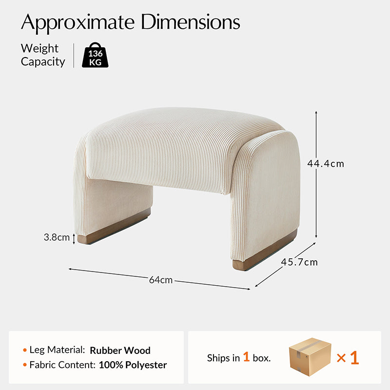 Showcasing a rounded silhouette and smooth contours, this ottoman blends seamlessly into contemporary interiors while offering comfort. Upholstered in corduroy fabric, the surface features a subtle ribbed texture that adds depth and visual interest, while remaining gentle to the touch. The generously padded top provides a supportive seat or footrest, making it a versatile addition to your home—perfect for lounging, extra seating, or even as a makeshift coffee table. Supported by sturdy solid wood legs, this ottoman ensures stability and durability. Its rounded silhouette makes it easy to move and place wherever needed—whether in the living room, bedroom, or reading nook. The modern design and cozy fabric strike a balance between aesthetics and function. Whether used as a standalone accent or paired with a sofa or lounge chair, this ottoman brings warmth, comfort, and a refined touch to any setting.