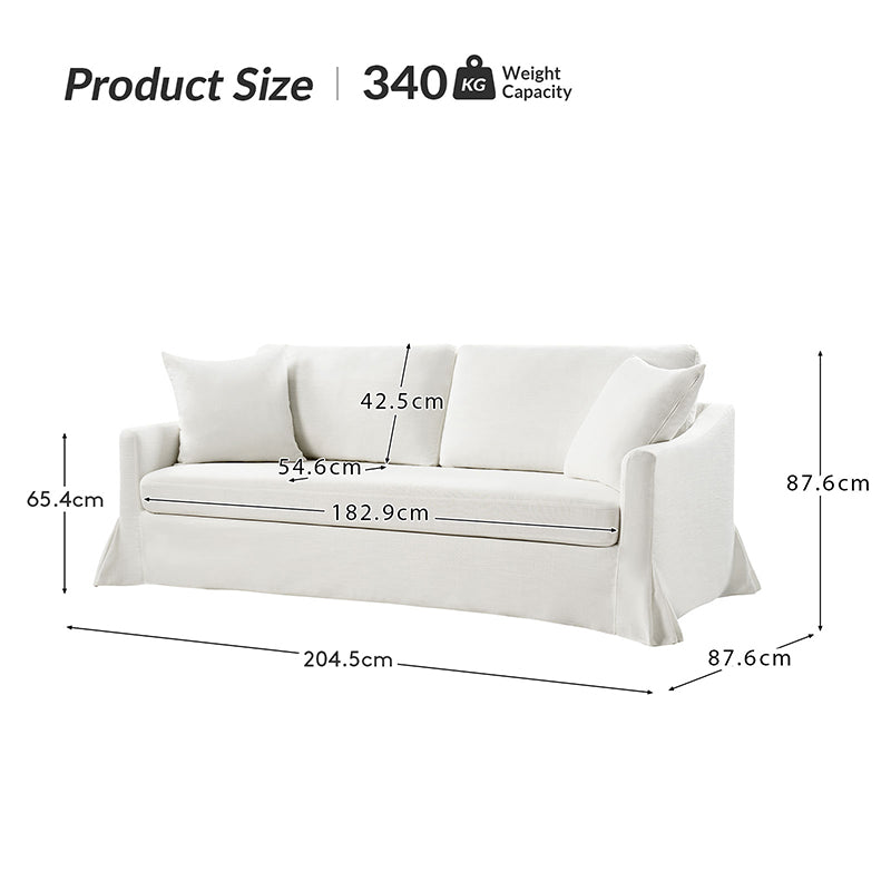 Introducing the versatile, easy-to-maintain sofa that effortlessly adapts to Traditional, Transitional, Glam, Coastal, Rustic, Lodge, Farmhouse, Bohomina, and more. Enjoy quick assembly, reversible cushions, and an easy, one-piece slipcover extending to the bottom. It's a breeze to put on and take off.