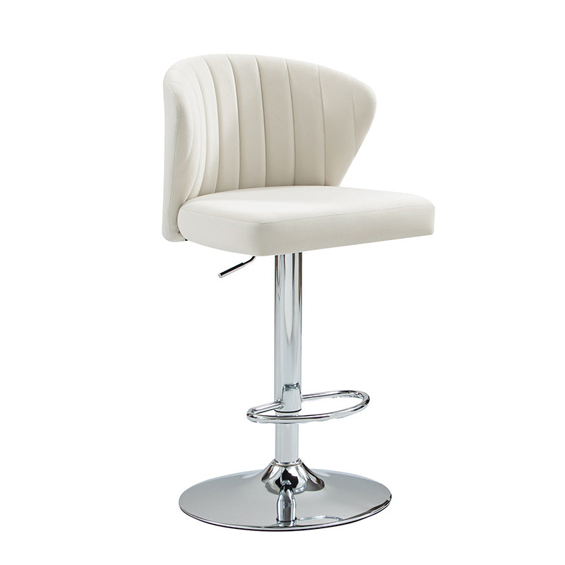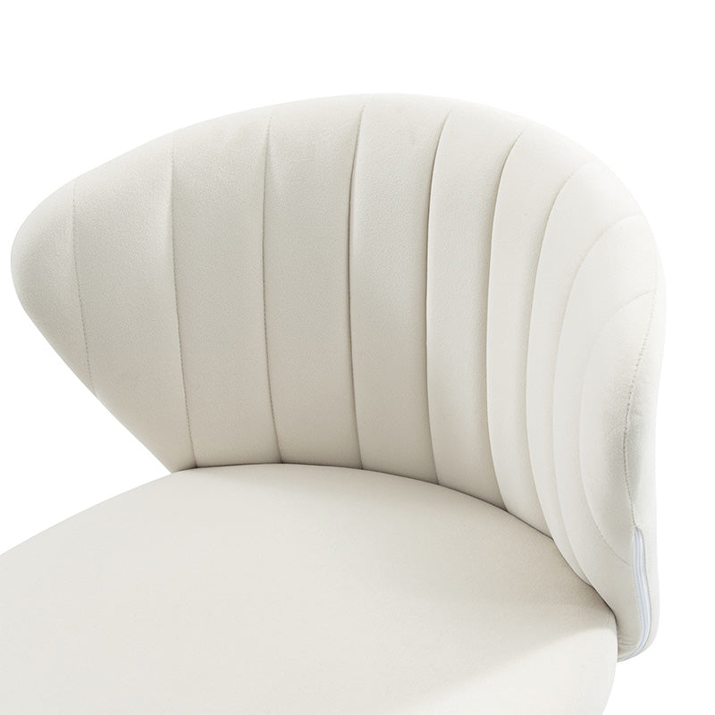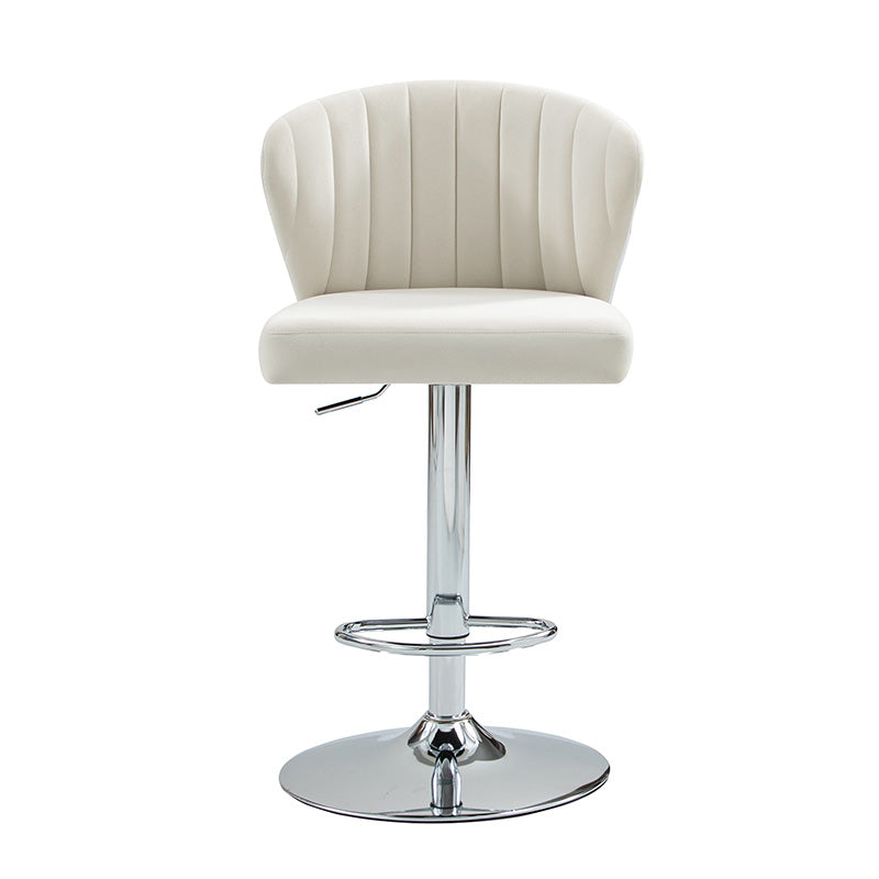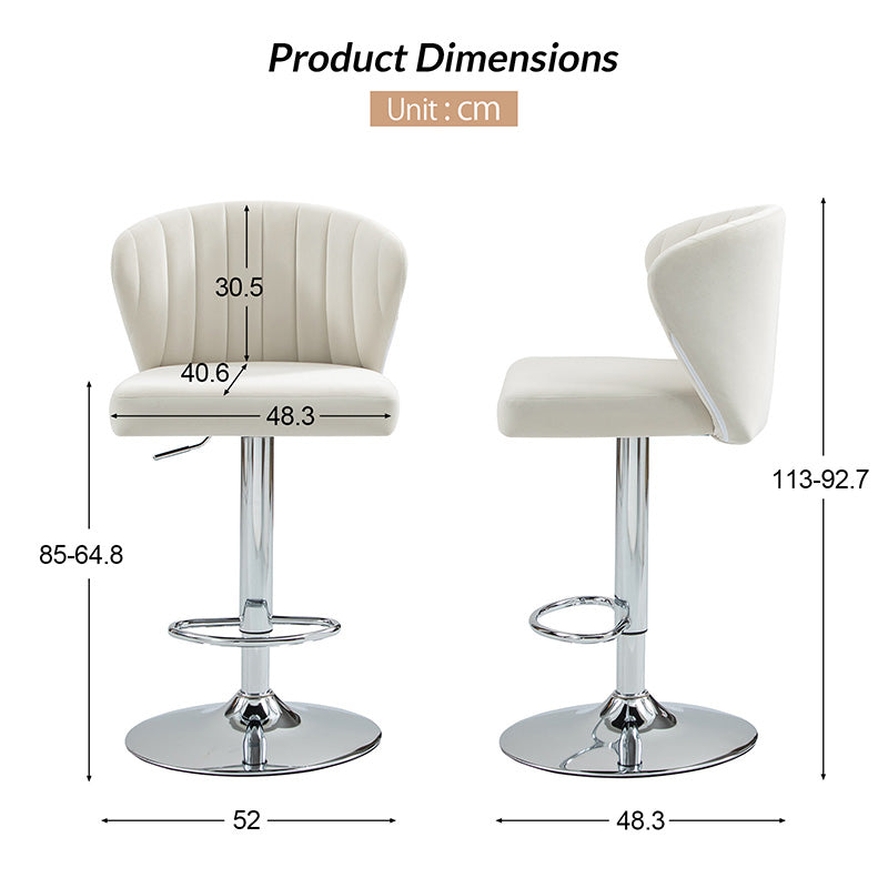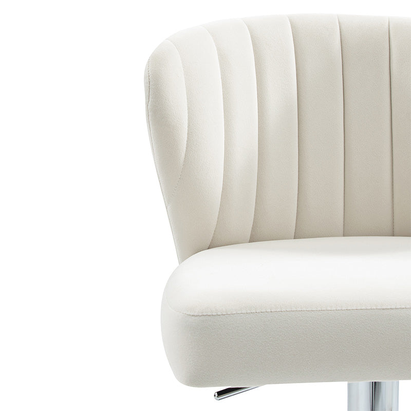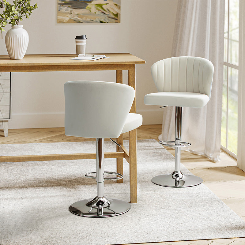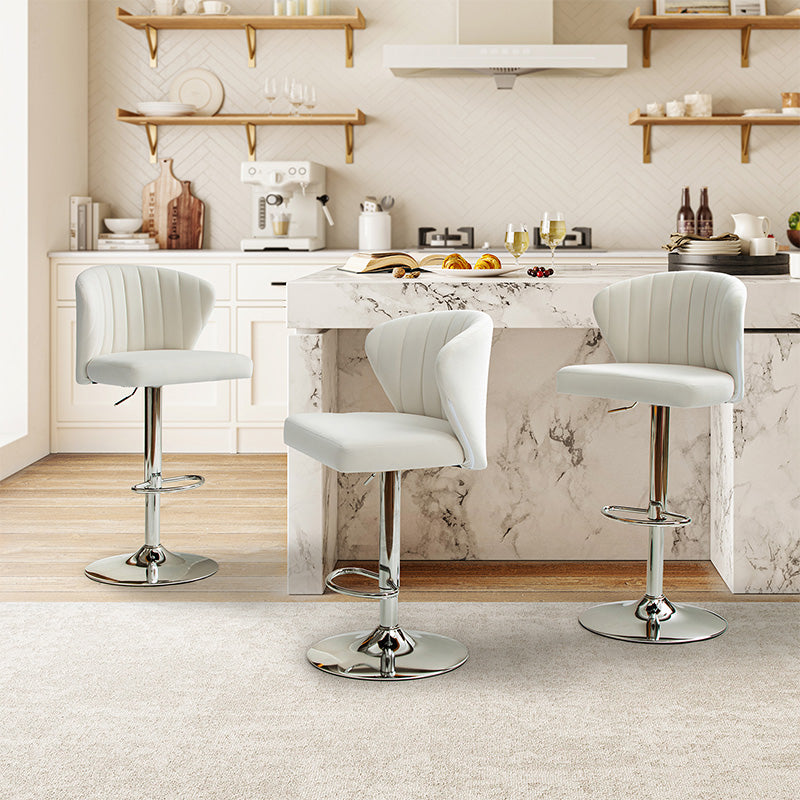 Elevate your dining or living room with this modern barstool, designed to offer both style and comfort. Featuring a gracefully curved backrest, upholstered in smooth velvet, this piece exudes contemporary elegance while providing support. The height-adjustable mechanism allows you to customize the seating position, making it versatile for different counter heights and seating preferences. A swivel function ensures easy mobility and is suitable for socializing or quick adjustments. The sturdy silver metal trumpet base, complete with a built-in footrest, adds stability and a sleek metallic shine that enhances any modern interior. Whether for dining, a home bar, or casual gatherings, this barstool combines quality materials with functional design to bring contemporary sophistication to your space.