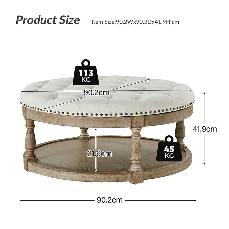 This ottoman will become your best choice to embellish your living space. Whether as a place to put your feet at the end of the day or a place to sit, its button-tufted and nailhead trim design will make a statement. The four solid wood legs support an upper soft foam-filled wooden frame, boasting a perfect combination of extra sturdiness and comfort while bringing you a feel of reliability and high grade. A built-in storage shelf underneath is perfect for stashing magazines, art books, or even your fave slippers. It's the perfect pick for your home.