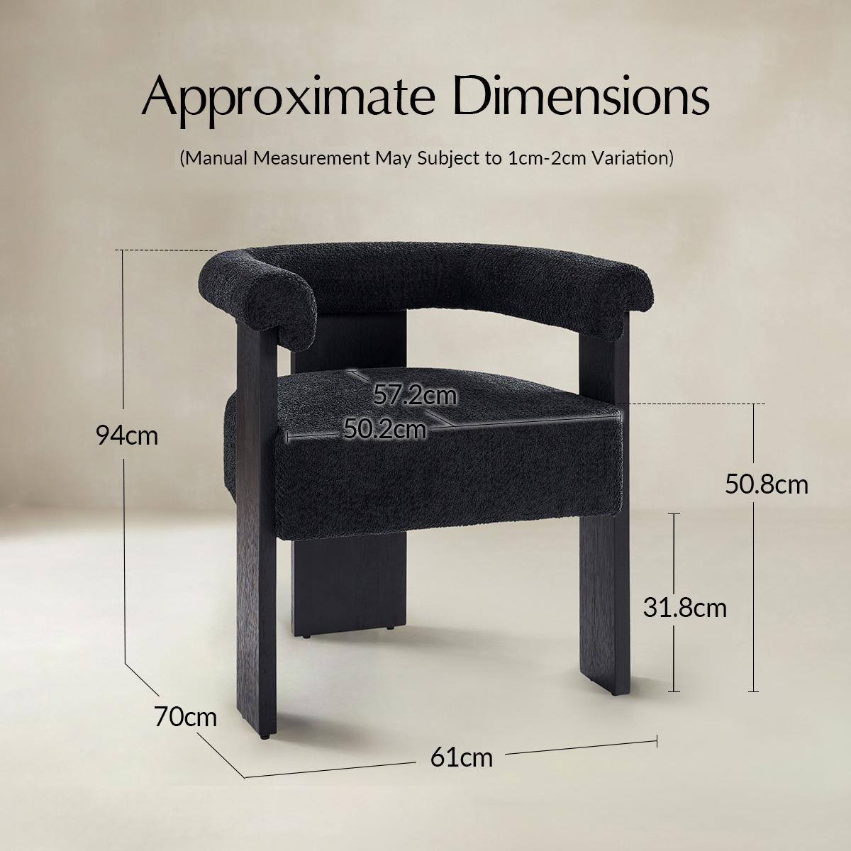 The dining chair epitomizes modern elegance with its sleek design. Upholstered in quality boucle fabric, the dining chair offers a tactile and inviting seating experience. Its lamellar foot ensures stability and durability, while the rubber wood solid wood legs provide a natural and sophisticated touch. The chair's solid back offers support, promoting comfort during meals or gatherings. The round backrest adds a contemporary flair, creating a visually appealing silhouette that complements various dining spaces. With a harmonious blend of comfort, style, and quality craftsmanship, the dining chair is not just a piece of furniture but a statement of refined taste and contemporary living.