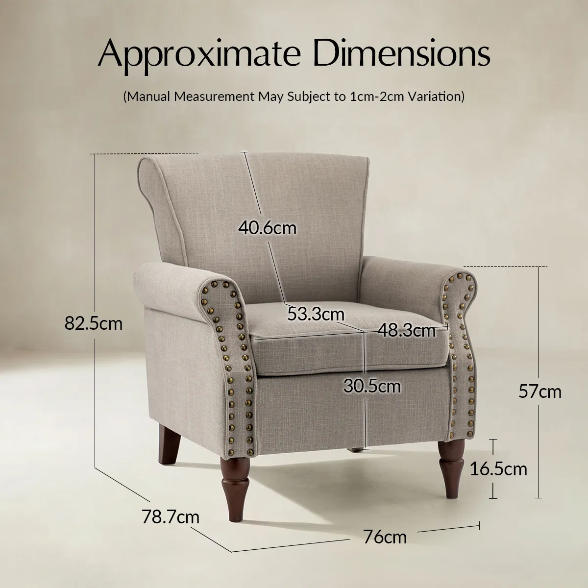 Spring meets your demands, bringing you endless reverie. Beautifully carved solid wood legs support the manufactured wood frame, and the seat cushion filled with a blend of silk wadding and foam is wrapped in soft polyester fabric. Awash in an attractive finish, it lends a touch of classic appeal to your arrangement. Fit well in the living room, bedroom, office, and other scenes thanks to the traditional yet classic outlook, all you need to do is add this wonderful piece to your cart and bring it home!