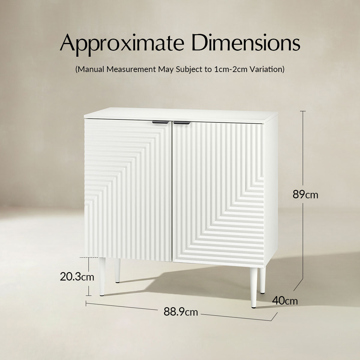 This cabinet comes with a linear groove design and novel colors that are compatible with a variety of living styles and home decor, adding a modern and elegant touch that highlights the beauty of your house. The water and the stain-resistant surface is easy to clean. The textured design on the cabinet doors attracts proper attention. Two spacious storage compartments make this piece the perfect solution for anything you want to put in it. Add extra storage space to your living space with this cabinet.