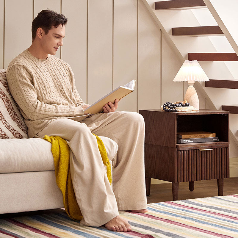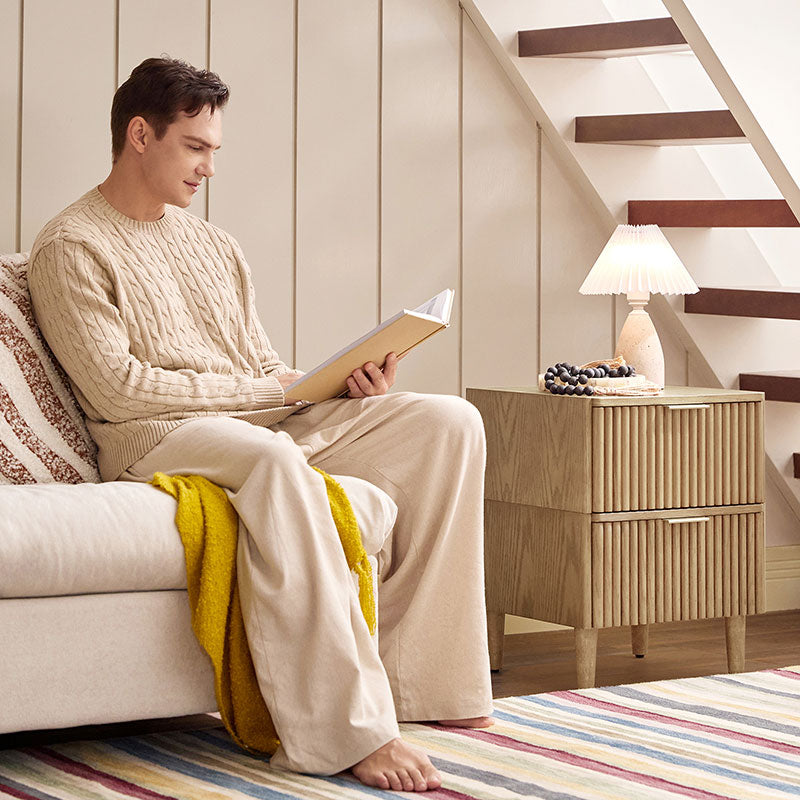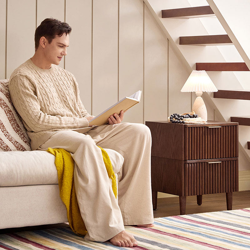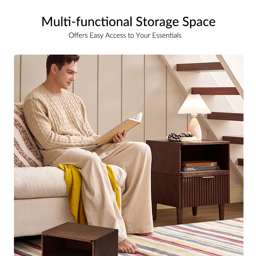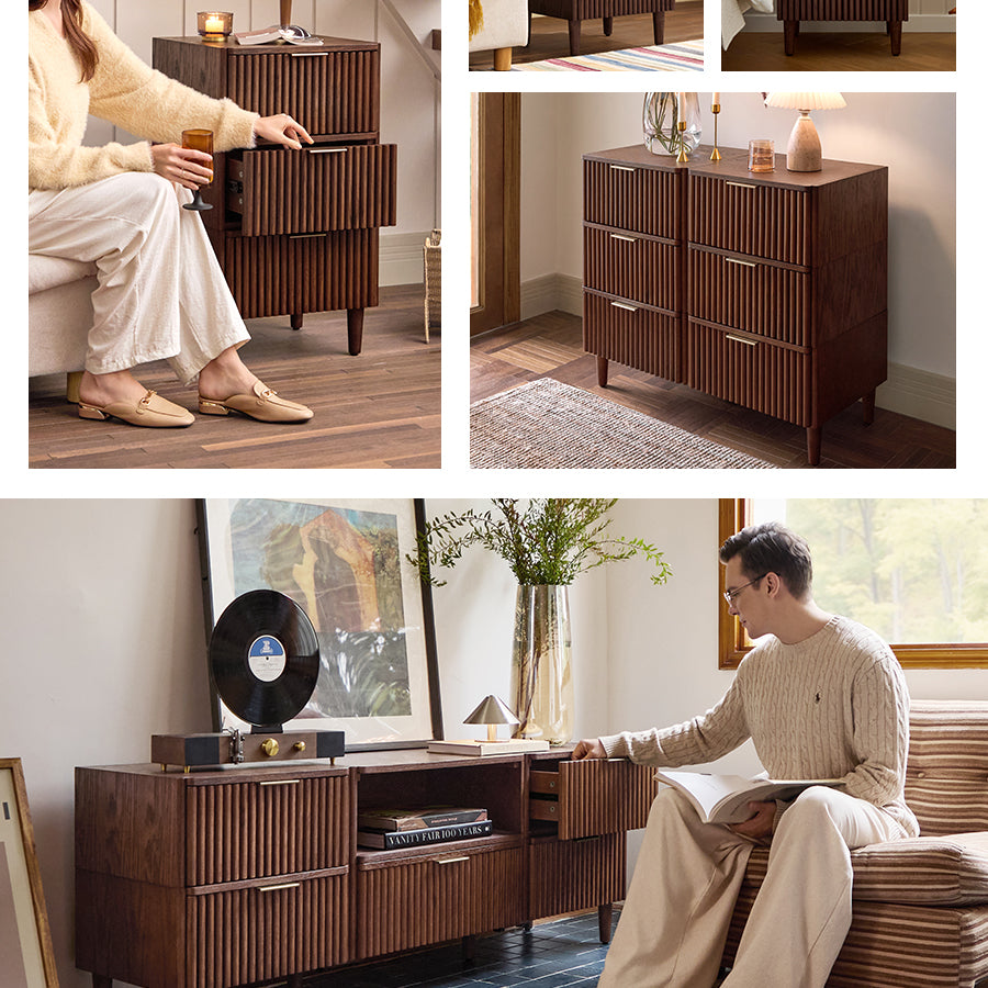 -The product includes one modular unit/one bedside table/chest of drawers/TV unit with quick installation. -Fluted Design:Elegant vertical fluting adds a layer of sophisticated texture and visual interest to the design. -Crafted from Solid Wood: The drawer fronts and legs are made from high-quality solid wood, ensuring inherent durability and a natural warmth. -Modular & Adaptable System:Offering flexible combination options, this bedside table/chest of drawers/TV unit can be configured in multiple forms to create a bespoke storage solution tailored to your space and needs. -Responsibly Sourced Materials:Certified by FSC and OEKO-TEX, ensuring the wood comes from well-managed forests.