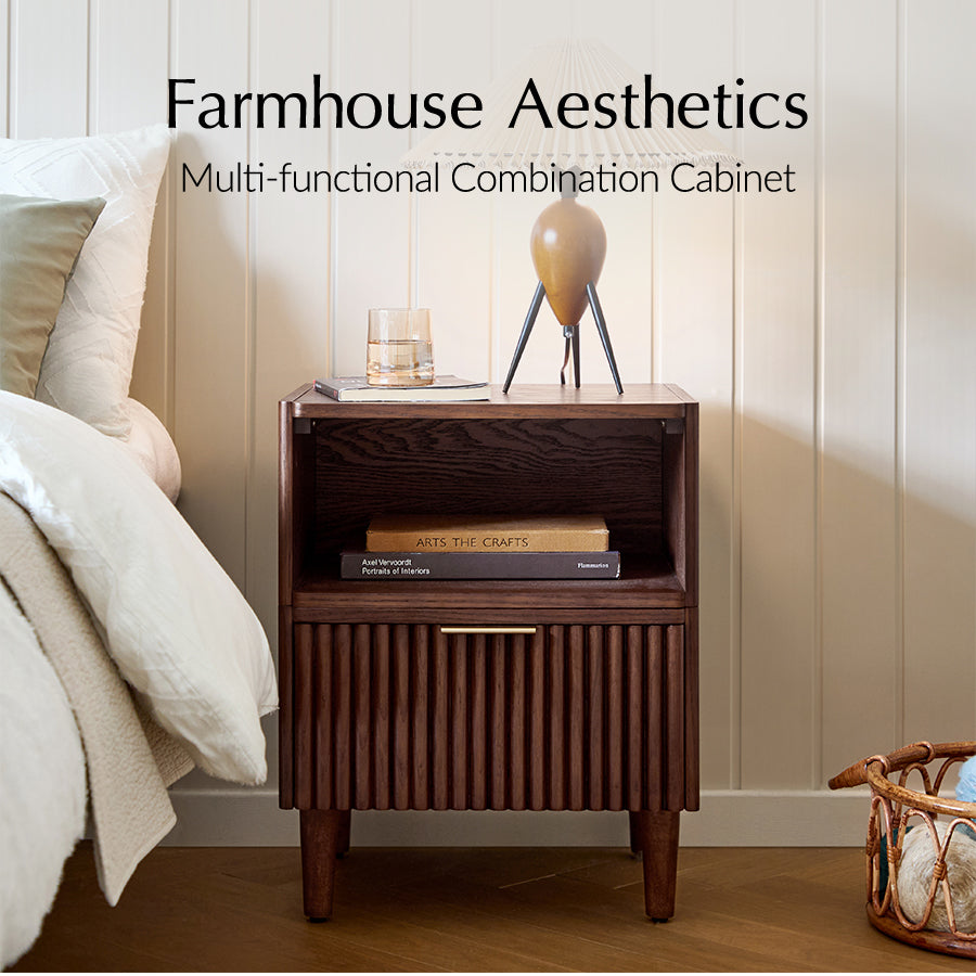 Embracing the warmth of the farmhouse aesthetic, this bedside table, chest of drawers, or TV unit. This piece blends beautiful lines with subtle fluted detailing. Expertly crafted, it highlights the unique, natural character of the timber, adding a touch of organic warmth to the room. Beyond its aesthetic appeal, the design is profoundly practical. It features a modular system, allowing you to combine units for a truly customised layout that suits your space. As a responsibly made piece, it carries both FSC and OEKO-TEX certifications, guaranteeing that the materials are sourced from well-managed forests. Furthermore, the innovative design ensures a quick and straightforward installation process, requiring no tools. This product is the perfect fusion of modular flexibility, functional storage, and timeless style.