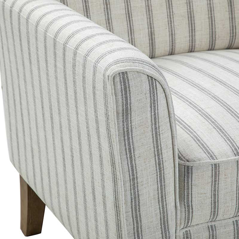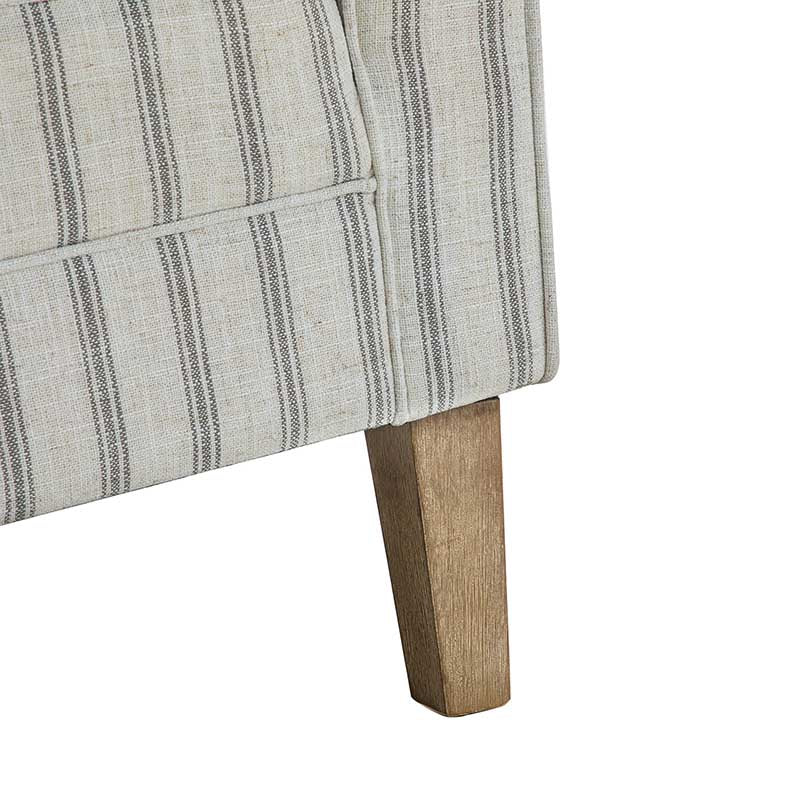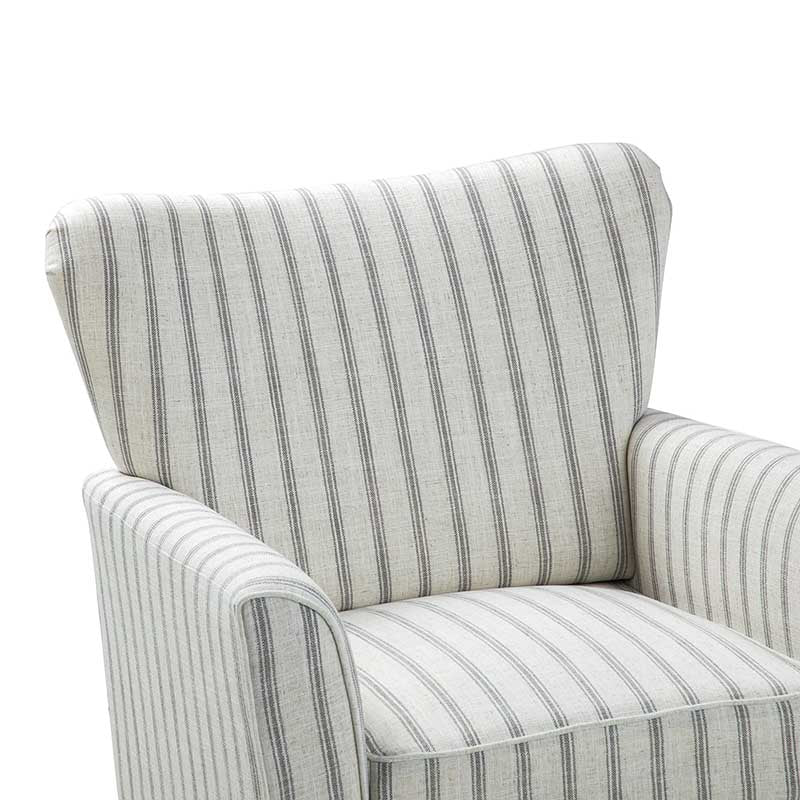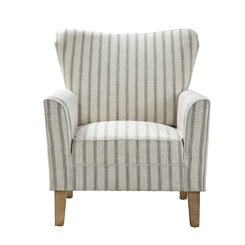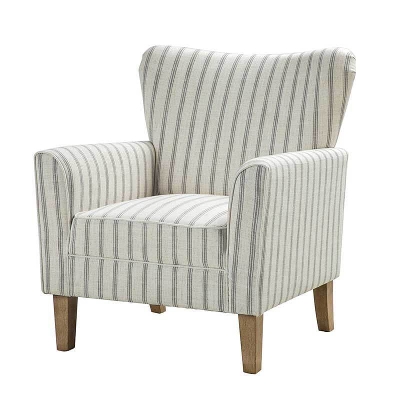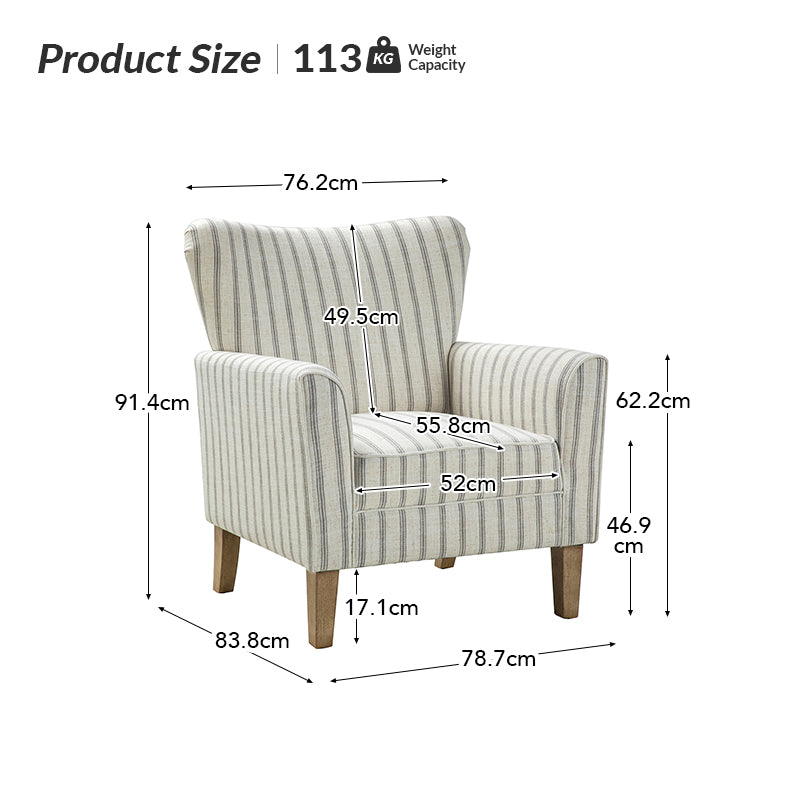 Bring a touch of coastal farmhouse charm to your living space with this beautifully crafted armchair. Featuring a classic nautical stripe in soft, contemporary tones, this chair is designed to complement both modern and traditional interiors. Its generous wingback silhouette and gently curved arms offer a supportive and inviting seat — ideal for curling up with a good book. Upholstered in durable, easy-care polyester fabric and filled with supportive foam and sinuous springs, it provides long-lasting comfort. The sturdy wood frame ensures lasting stability, while the removable cushion makes upkeep simple. A refined accent piece that adds warmth and character to any room. Supports up to 113.4 kg.